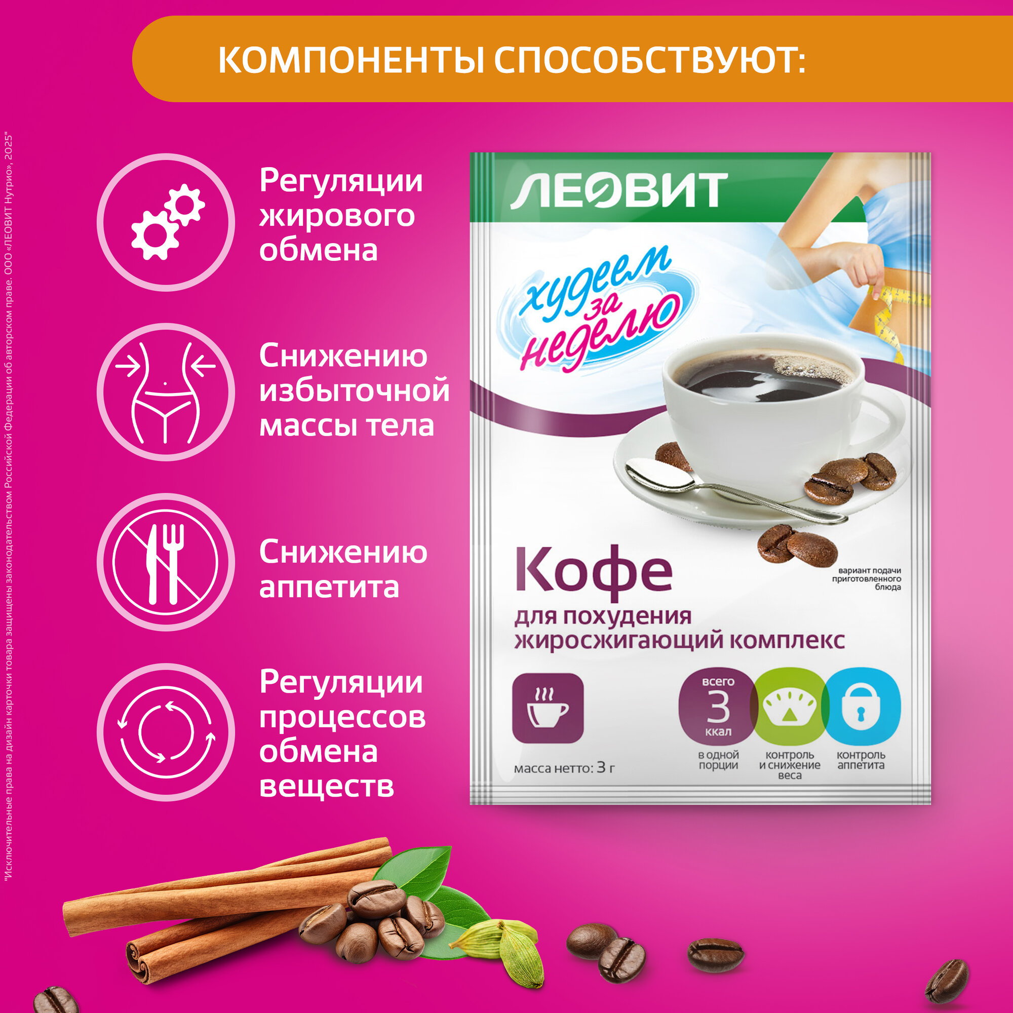 Кофе для похудения Худеем на неделю леовит жиросжигающий комплекс 10 пакетов по 3 г Упаковка 30 г интересное: