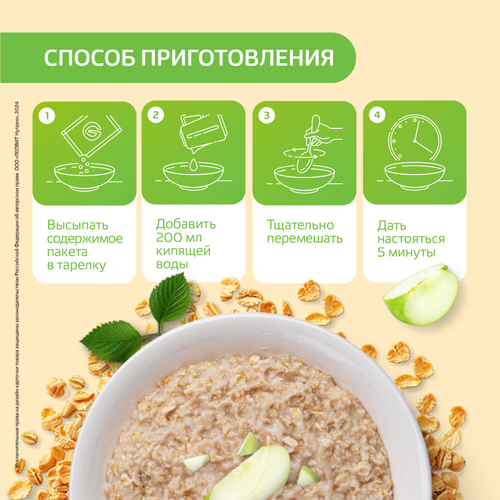 | Состав | хлопья овсяные, фруктоза, яблоко, заменитель сливок на растительной основе (кукурузный сироп, масло растительное, молочный белок), соль, корица, ароматизатор яблоко, витаминно-минеральный премикс (мальтодекстрин, витамин С, витамин Е, пантотеновая кислота, цинка сульфат, витамин В6, биотин), гарцинии камбоджийской экстракт |