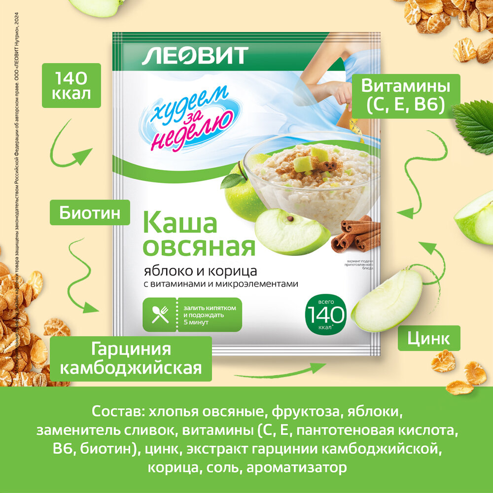 Каша овсяная "Яблоко и корица" с витаминами и микроэлементами леовит Худеем за неделю. Шоубокс 10 шт. по 40 г. интересное: