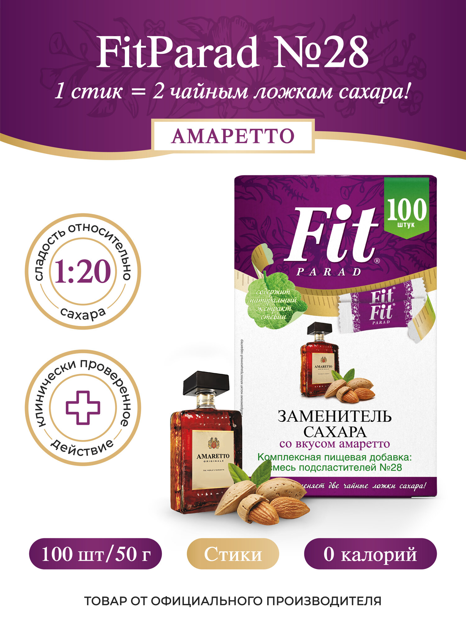 FitPARAD / Сахарозаменитель ФитПарад №28 со вкусом Амаретто 100 шт. интересное: