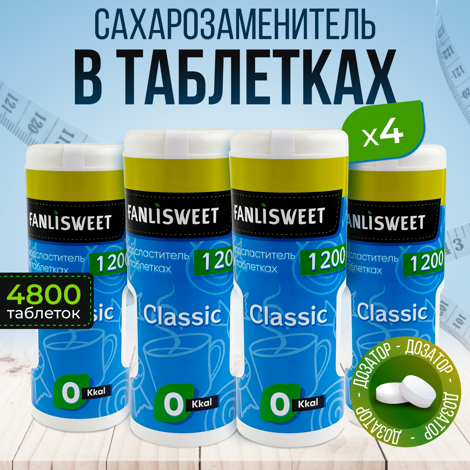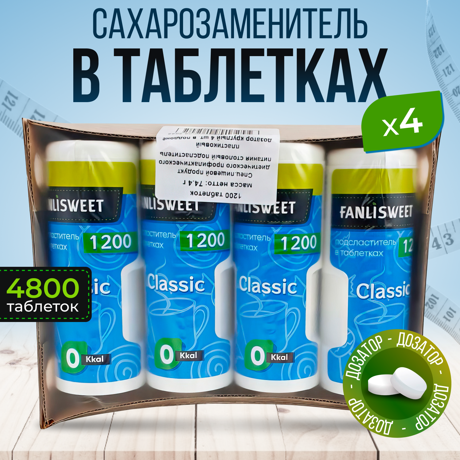 Купить Cахарозаменитель FANLISWEET Классик 1200 таб. в дозаторе х 4 шт.