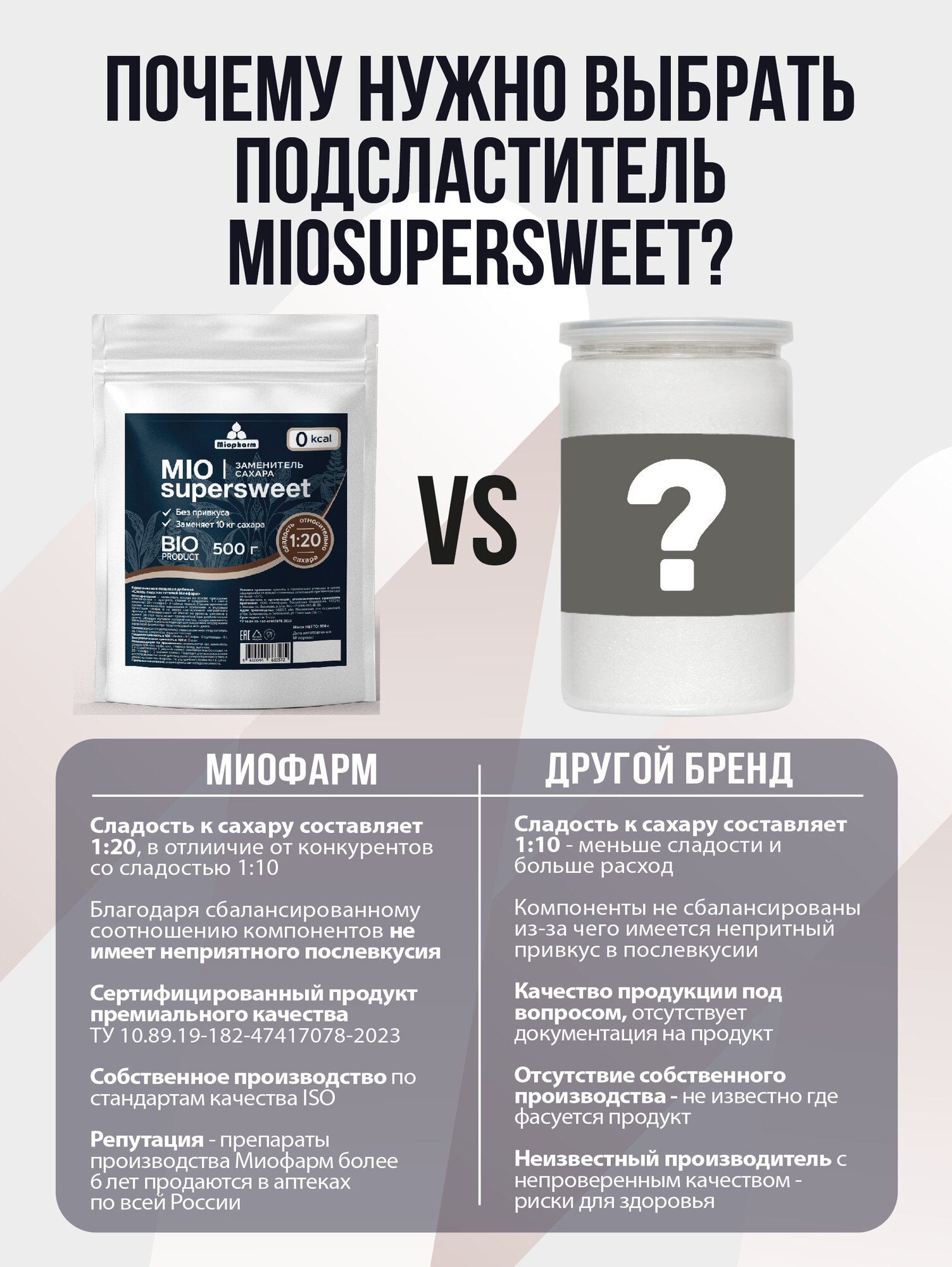 Купить Сахарозаменитель эритрит, стевия, сукралоза, заменитель сахара Miosupersweet 500 г BIO натуральный подсластитель 1 к 20, для похудения