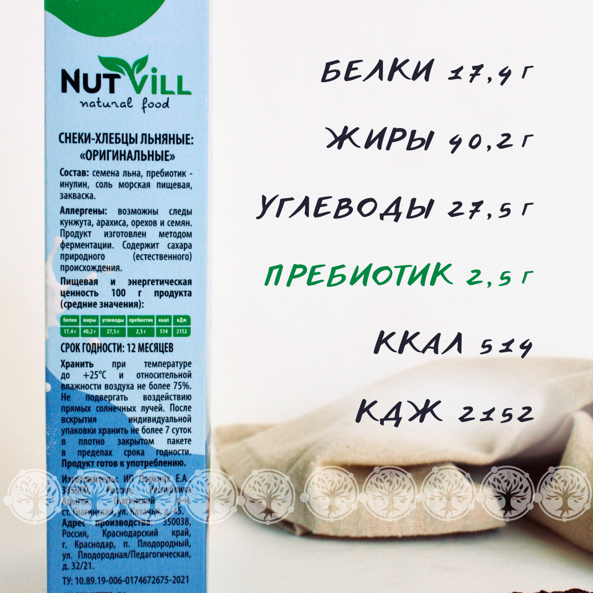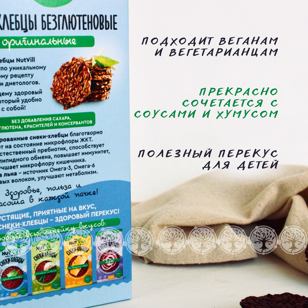 Снеки-хлебцы льняные NutVill "Оригинальные" без глютена и сахара с пребиотиком 3 шт х 70г интересное: