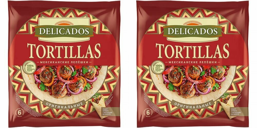 Купить Тортильи Delicados пшеничные оригинальные, 25 см, 6 шт, 400 г, 2 уп