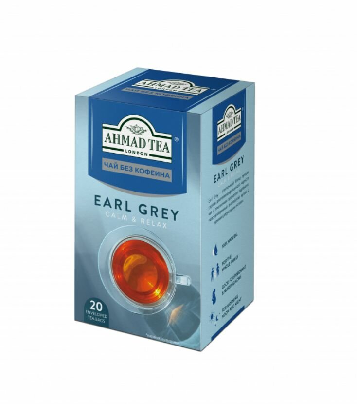 Купить 2620 Чай "Ahmad Tea", Эрл Грей, Чёрный чай без кофеина, пакетики с ярлычками в конвертах, 20х1,8г