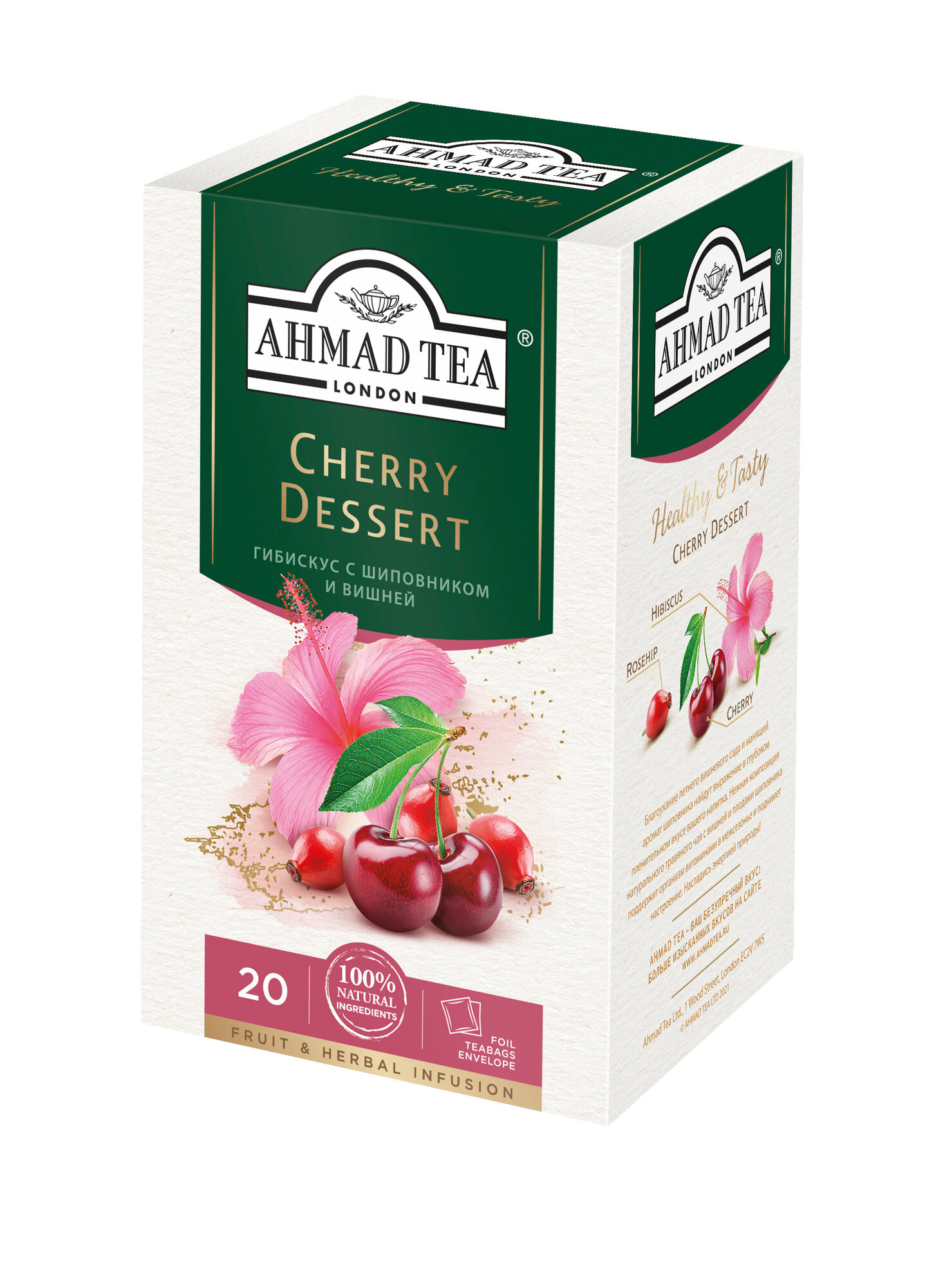 Купить Чай "Ahmad Tea", Черри Десерт, травяной со вкусом и аром. вишни и шиповника, пак. в к/ф 20х2г