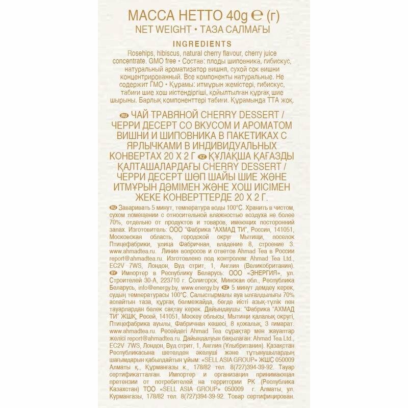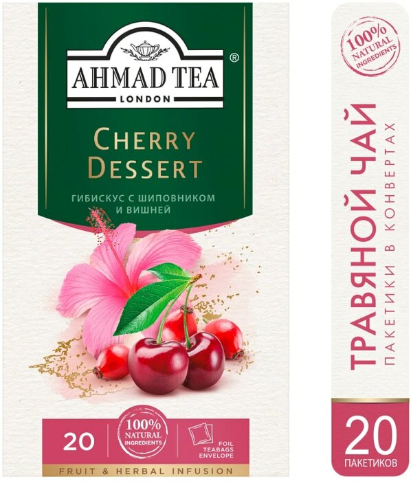 Чай "Ahmad Tea", Черри Десерт, травяной со вкусом и аром. вишни и шиповника, пак. в к/ф 20х2г интересное:
