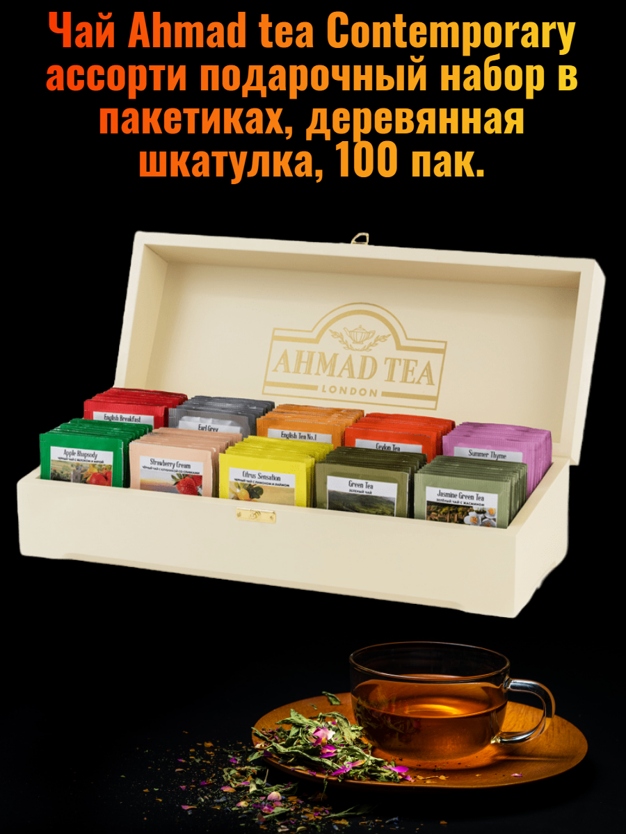 Купить Z583-2 Чай "Ahmad Tea", "Коллекция Ahmad Tea", в шкатулке из дерева, пакетики в конвертах из фольги