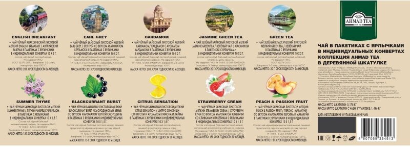 Z583-2 Чай "Ahmad Tea", "Коллекция Ahmad Tea", в шкатулке из дерева, пакетики в конвертах из фольги интересное: