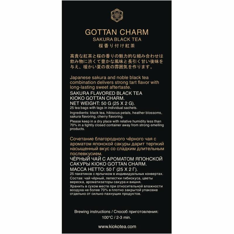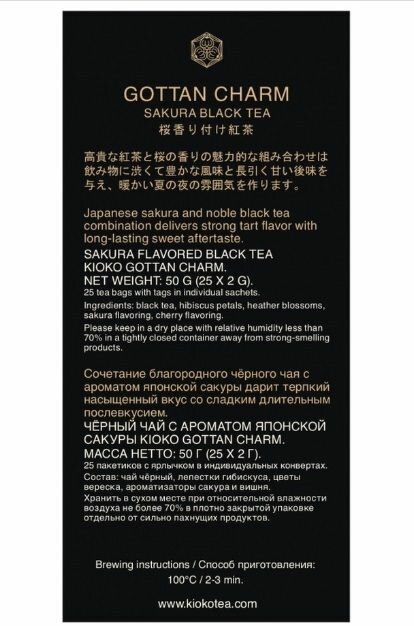 Чай в пакетиках Kioko Gottan Charm, черный, с ароматом японской сакуры, 25 пакетиков интересное:
