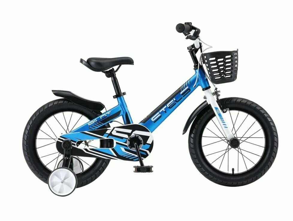 Велосипед Детский Pilot-150 18" V010 10" Синий цвет/ Велосипед для девочек и мальчиков с Дополнительными колесами