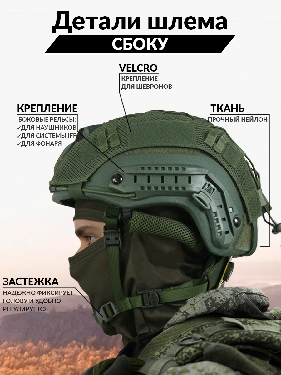 Шлем-каска свмпэ военная тактическая без ушей с чехлом мох интересное:
