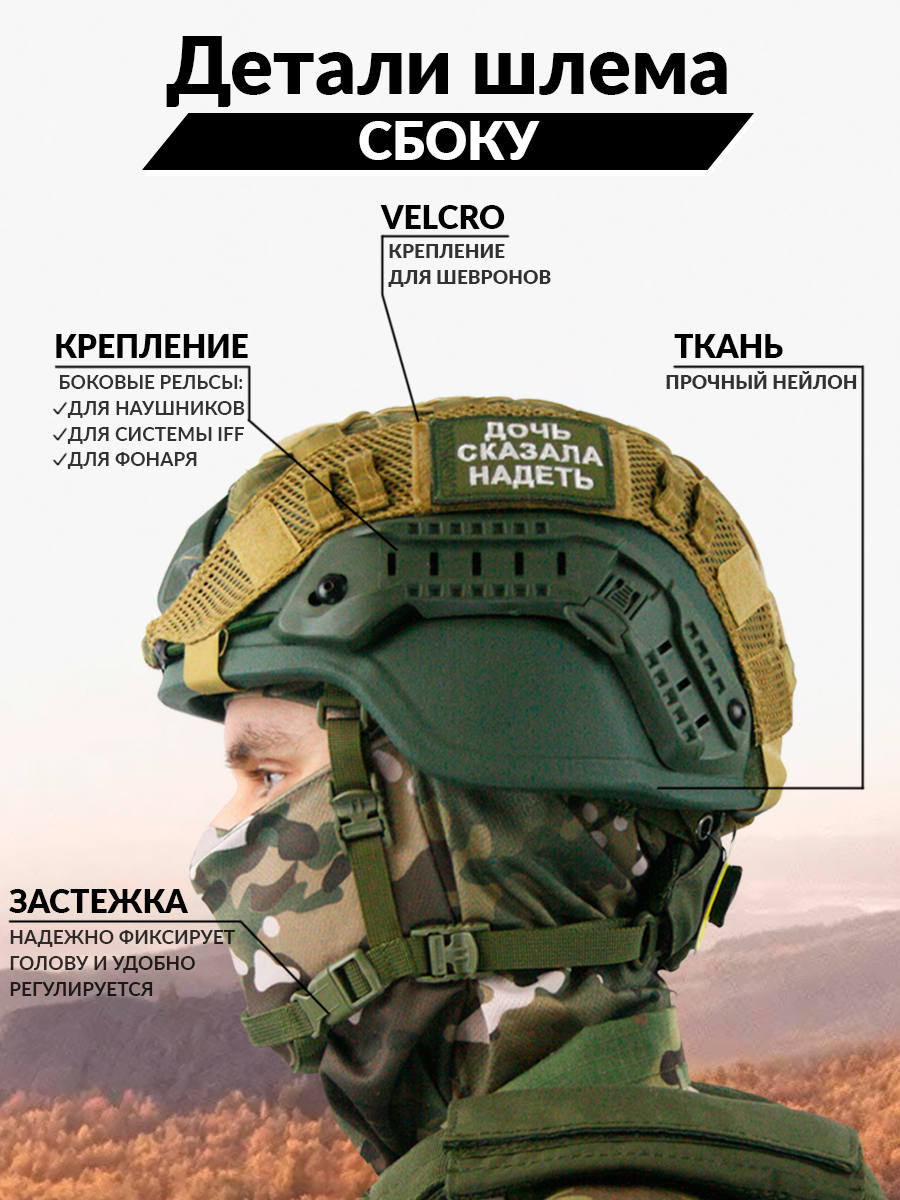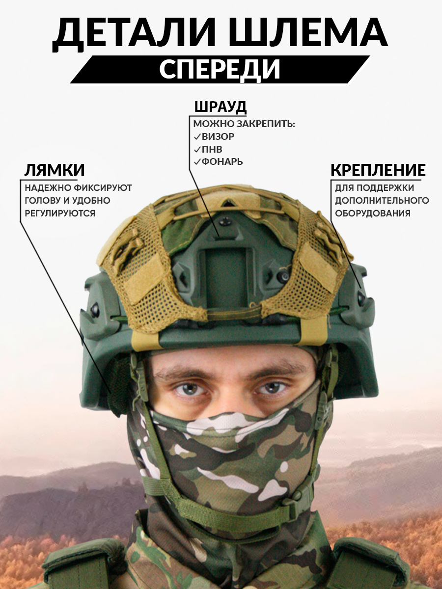 Шлем-каска свмпэ военная тактическая с ушами и чехлом мультикам интересное: