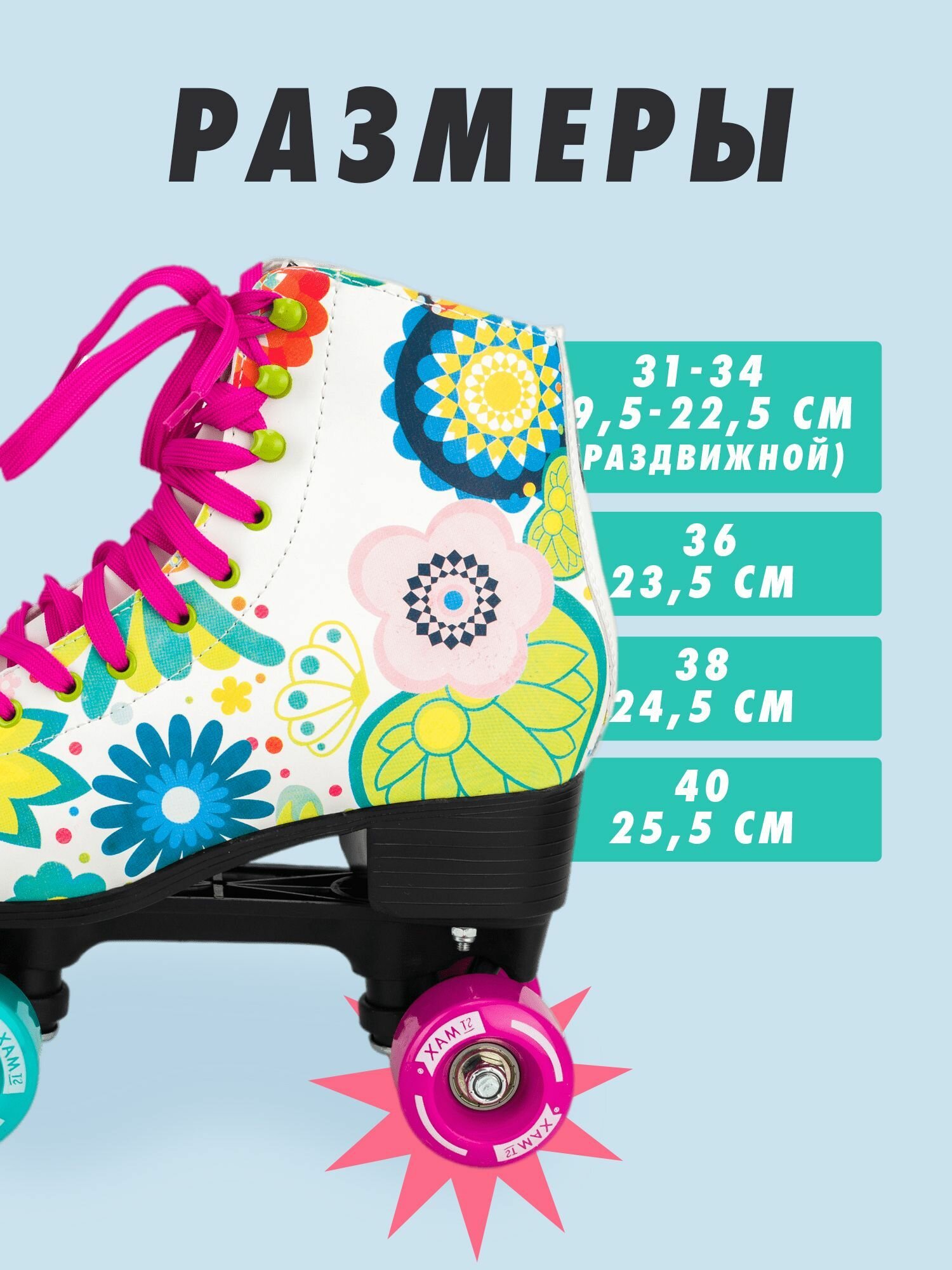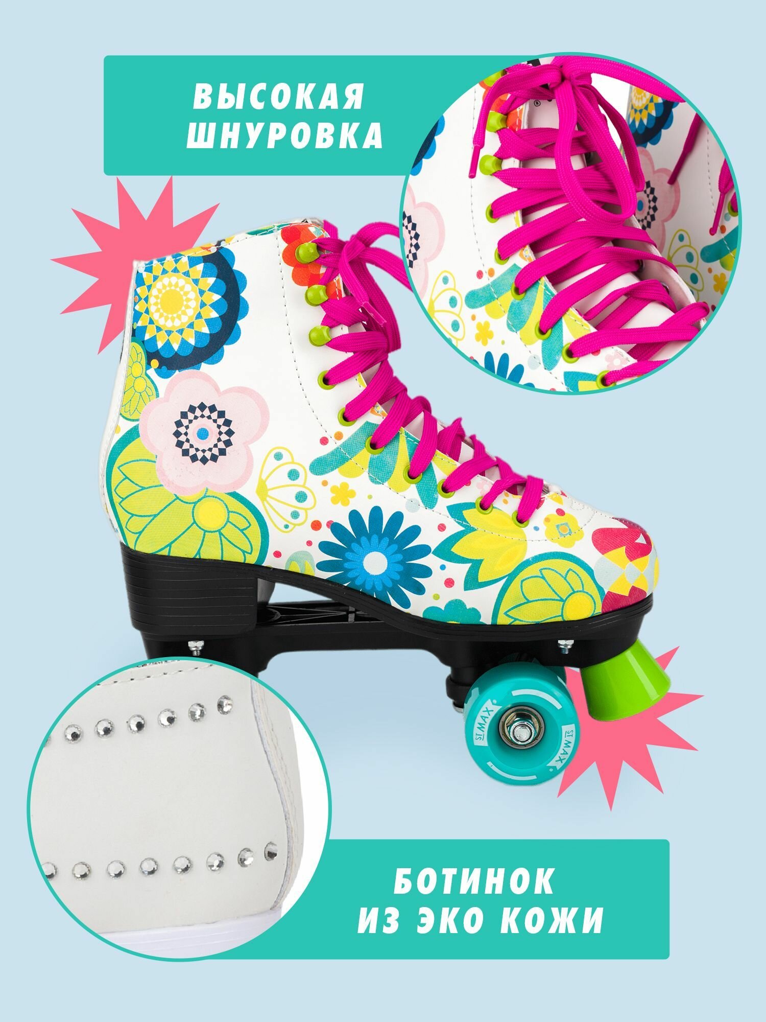 Роликовые коньки RADOST Roller skate YXSKT04FLWR цвет белые с цветами, размер S (31-34)