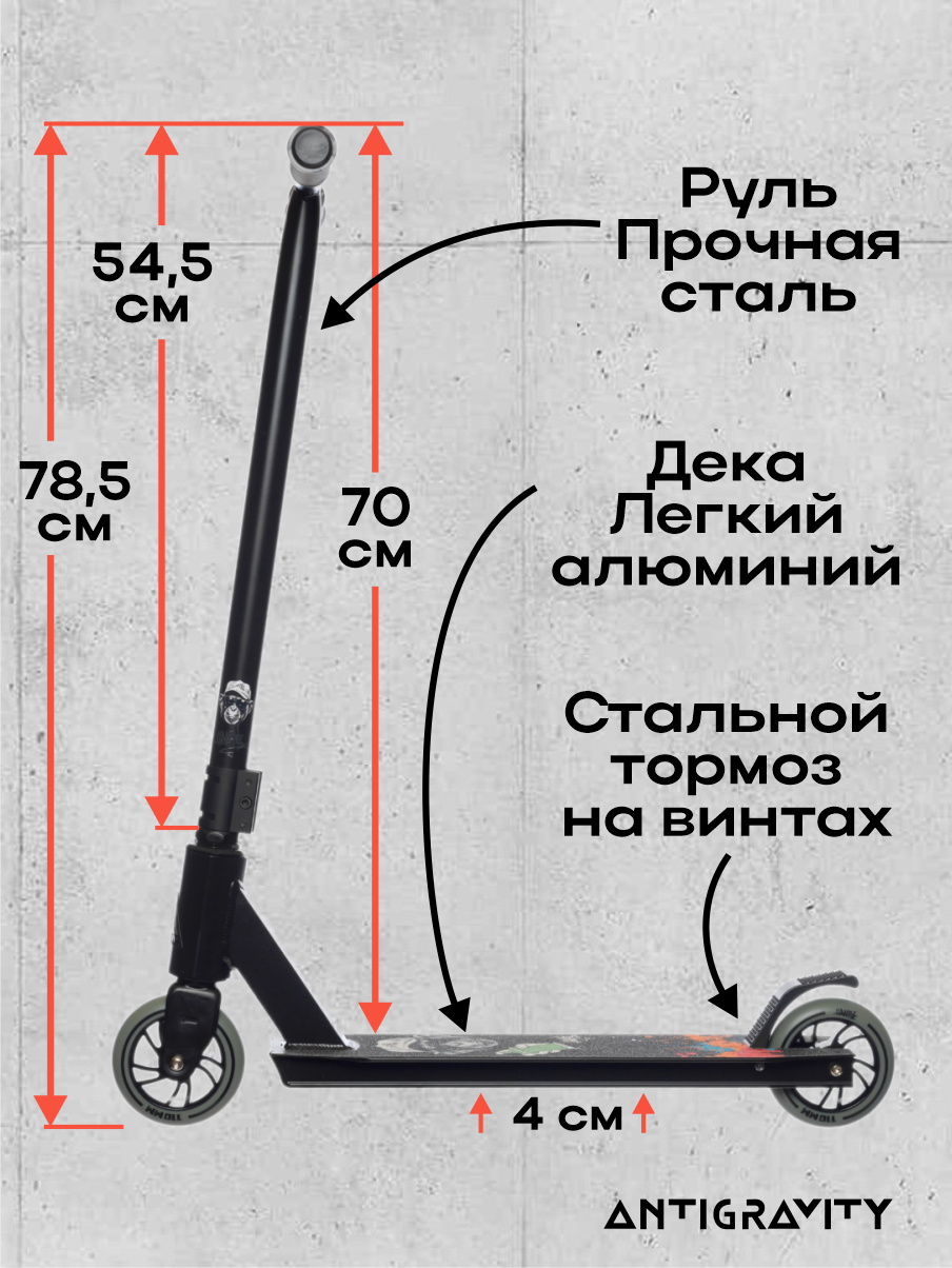 Самокат трюковой Urban Scooter Antigraviti Graffiti Grey интересное: