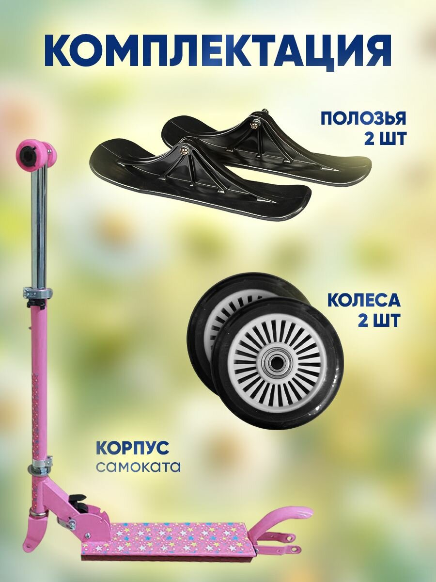 Самокат детский c ручкой Play Okay 2 в 1 трансформер, зимний и летний, антискользящая дека и регулируемая высота руля до 75 см, морозостойкий пластик, максимальная нагрузка 50 кг, 8+ лет интересное: