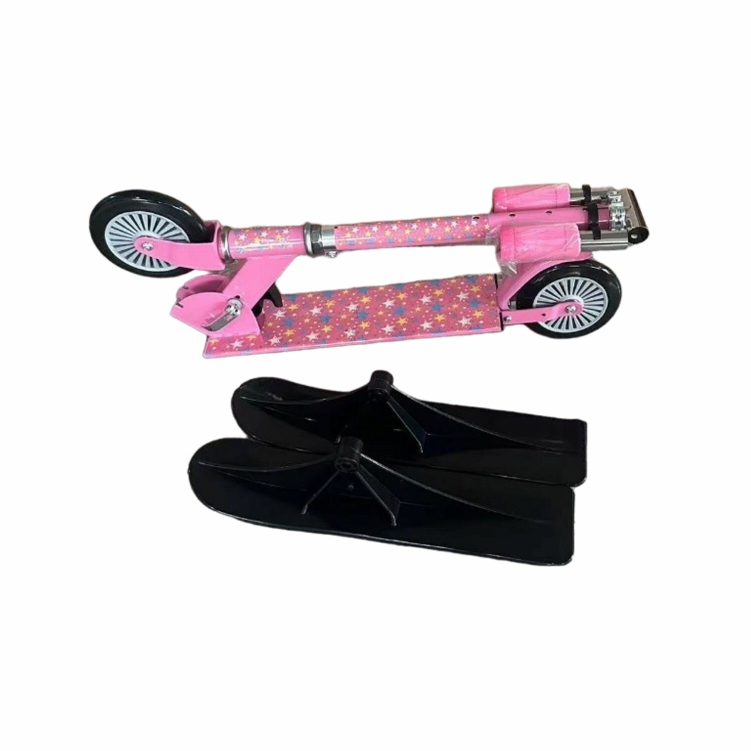 Купить Самокат детский c ручкой Play Okay 2 в 1 трансформер, зимний и летний, антискользящая дека и регулируемая высота руля до 75 см, морозостойкий пластик, максимальная нагрузка 50 кг, 8+ лет