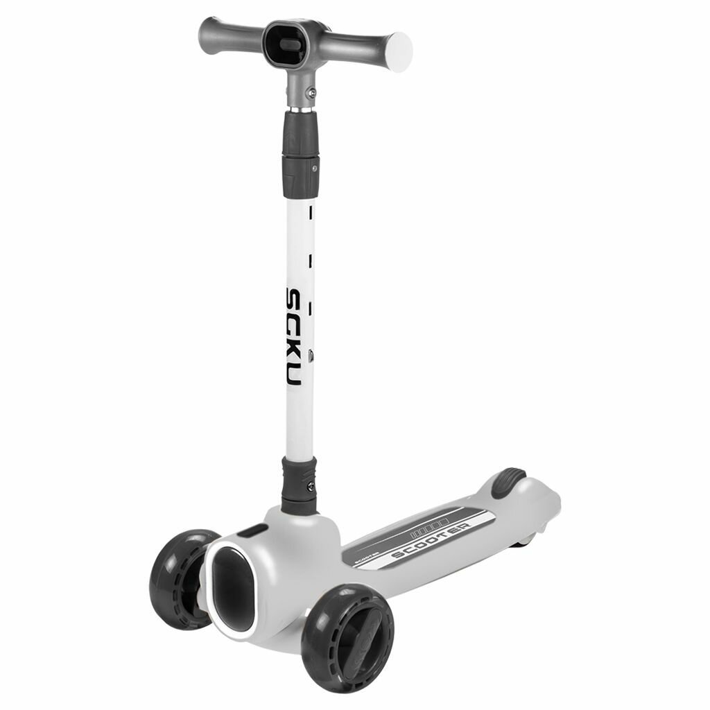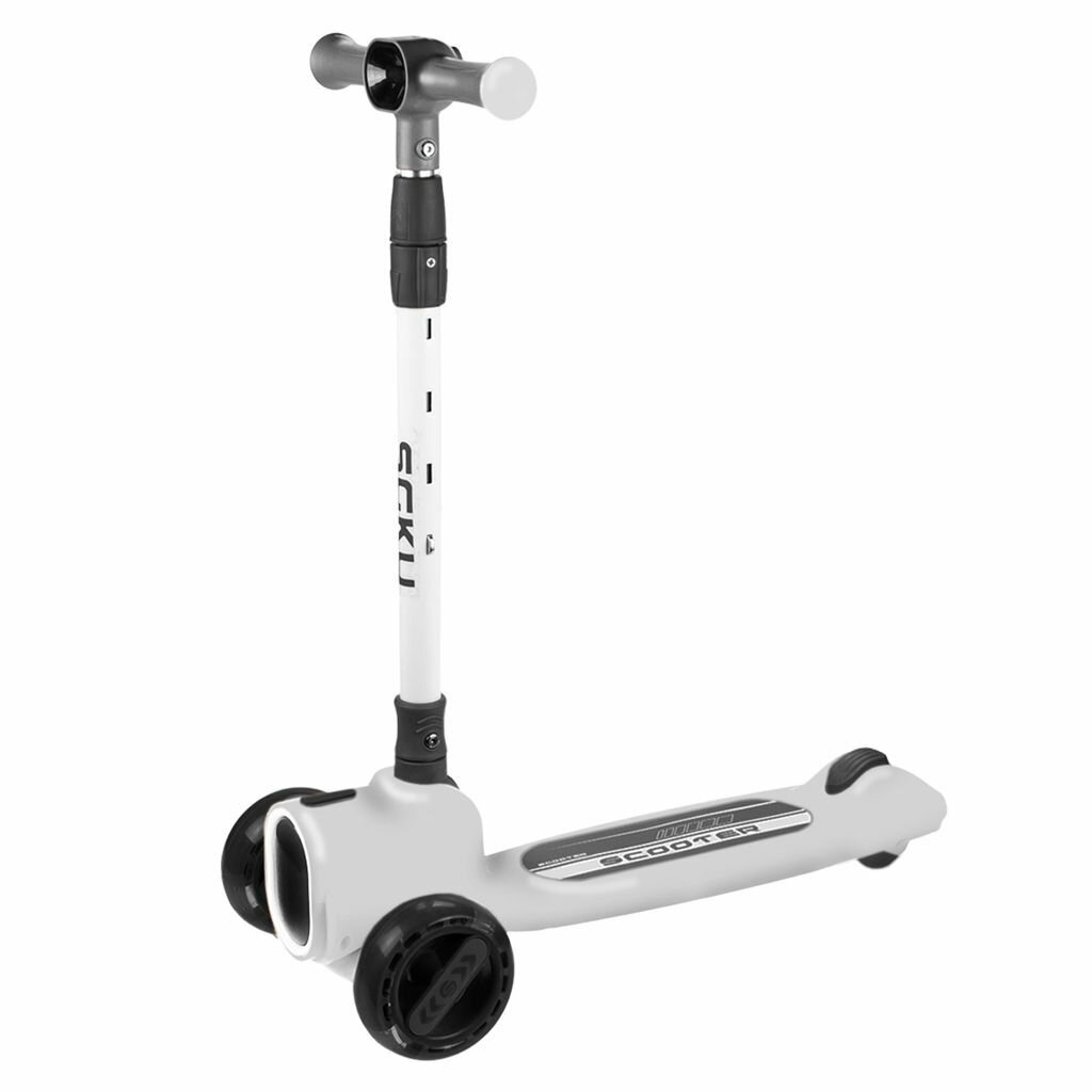 Купить Детский трехколесный самокат, городской, для девочек и мальчиков, с подсветкой и музыкой, максимальная нагрузка 80 кг, бело-черный