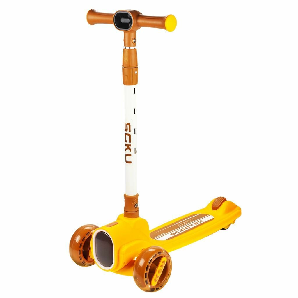 Купить Детский трехколесный самокат, городской, для девочек и мальчиков, с подсветкой и музыкой, максимальная нагрузка 80 кг, оранжевый