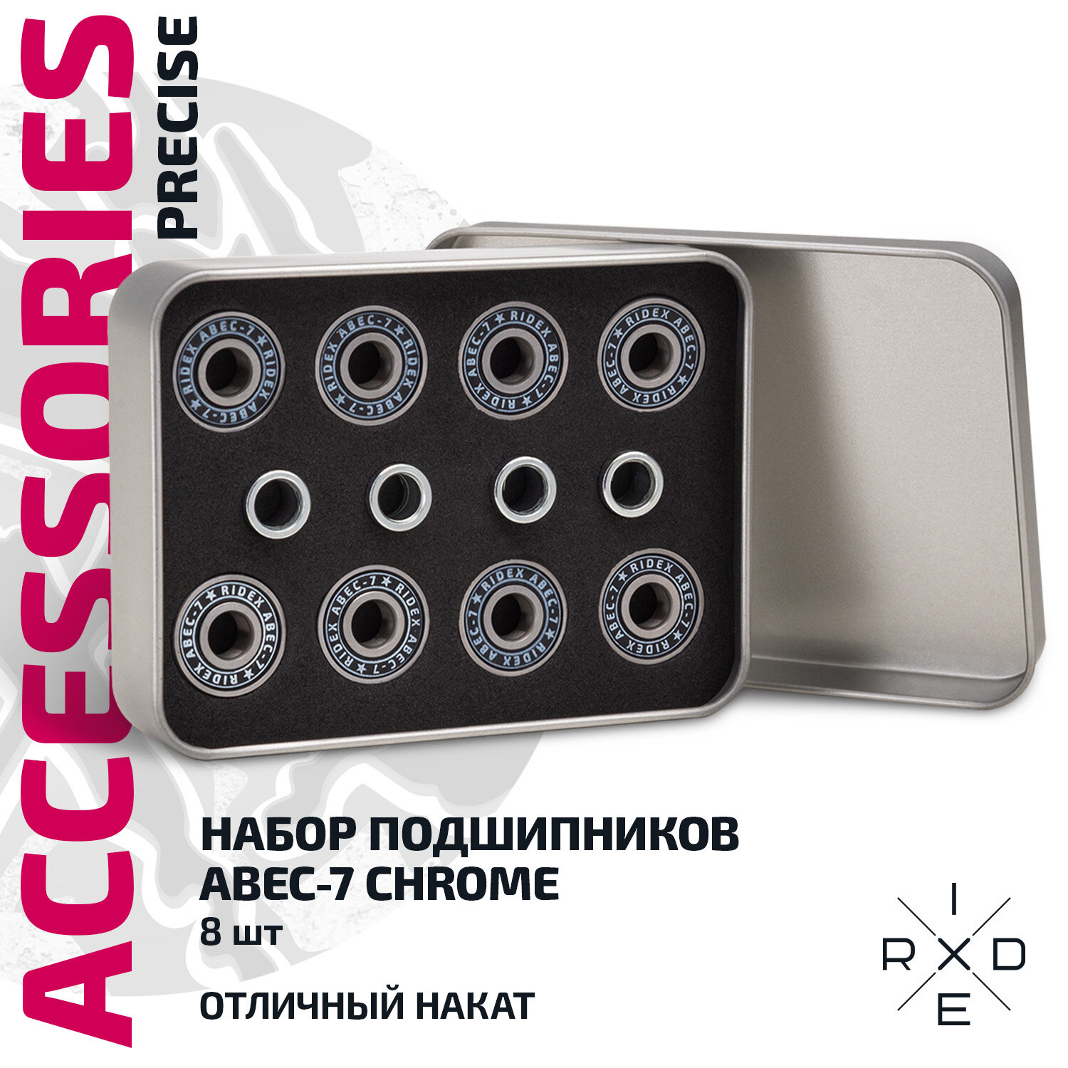 Набор подшипников RIDEX Precise, ABEC-7 Chrome, 8 шт., металлический бокс интересное:
