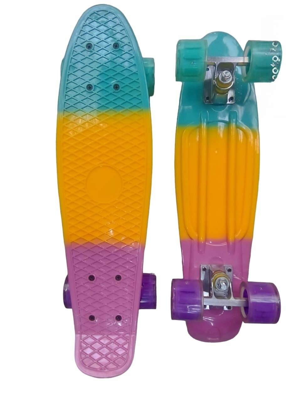 Купить Скейтборд со светящимися колёсами Трехцветный / Пенни борд / Лонгборд до 80 кг / Круизер, Оранжевый
