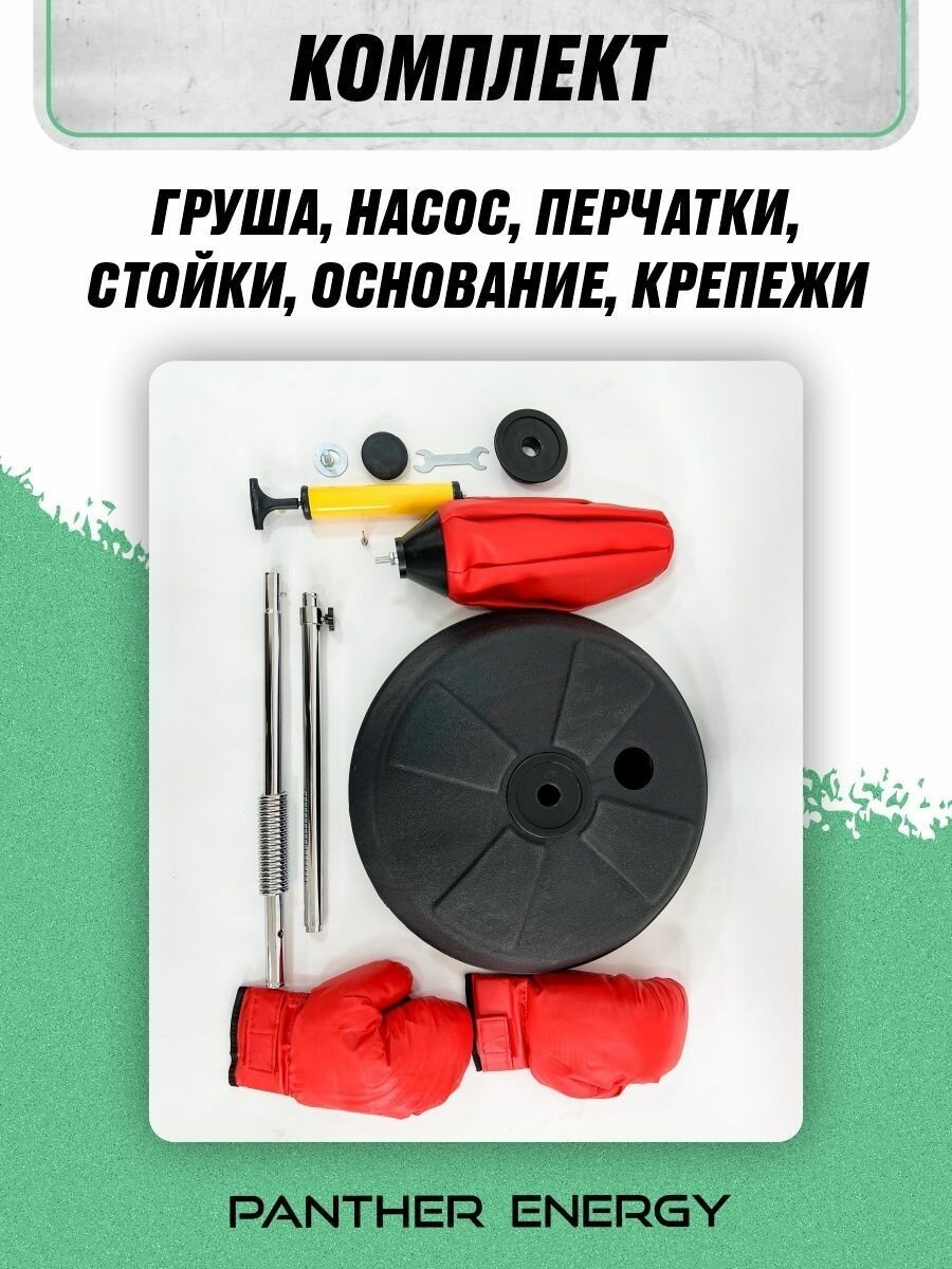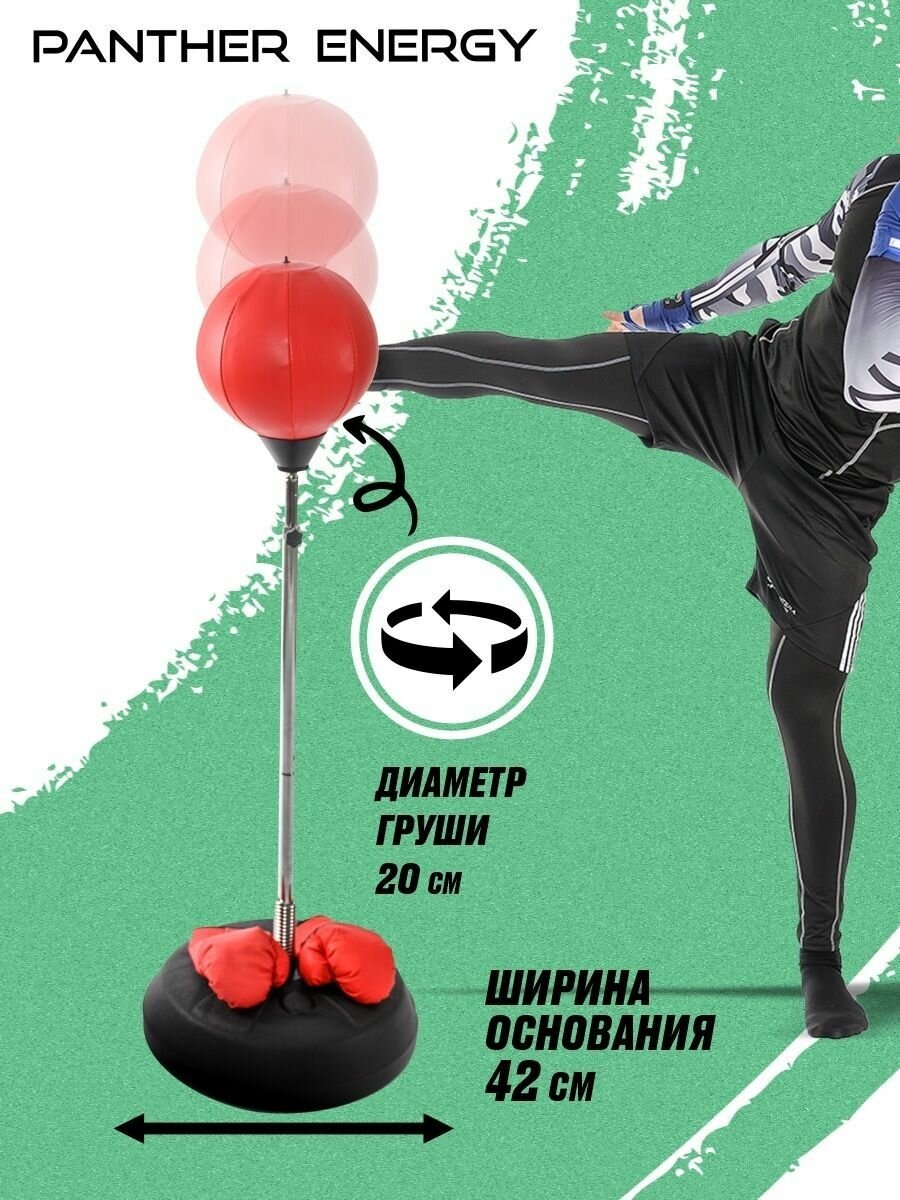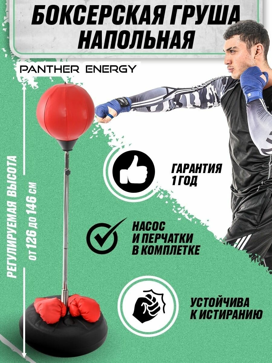 Груша напольная на стойке PANTHER ENERGY, от 130-160 см боксерская для бокса в красном цвете