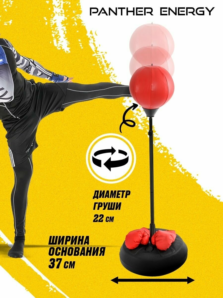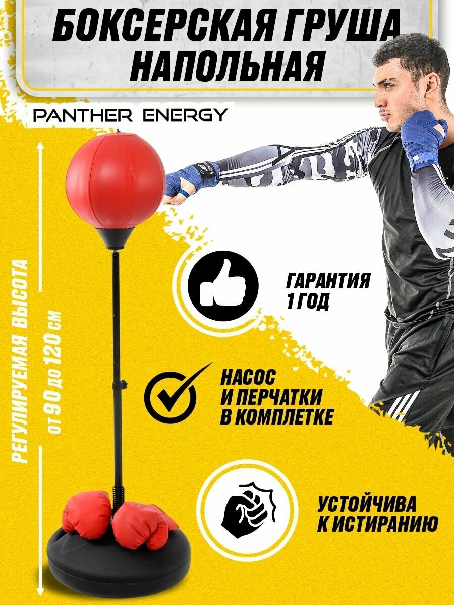 Груша напольная на стойке PANTHER ENERGY, от 130-160 см боксерская для бокса в красном цвете