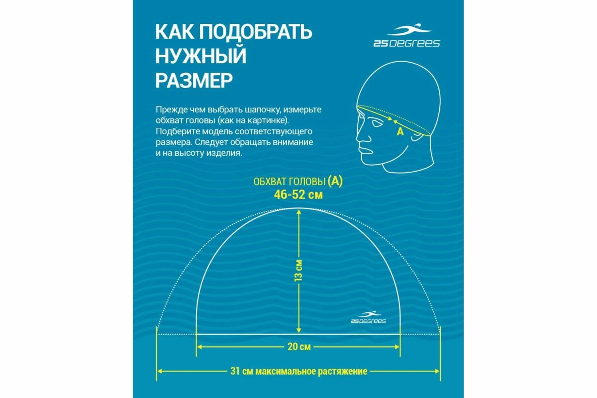 Шапочка для плавания тканевая 25DEGREES Comfo , цвет голубой