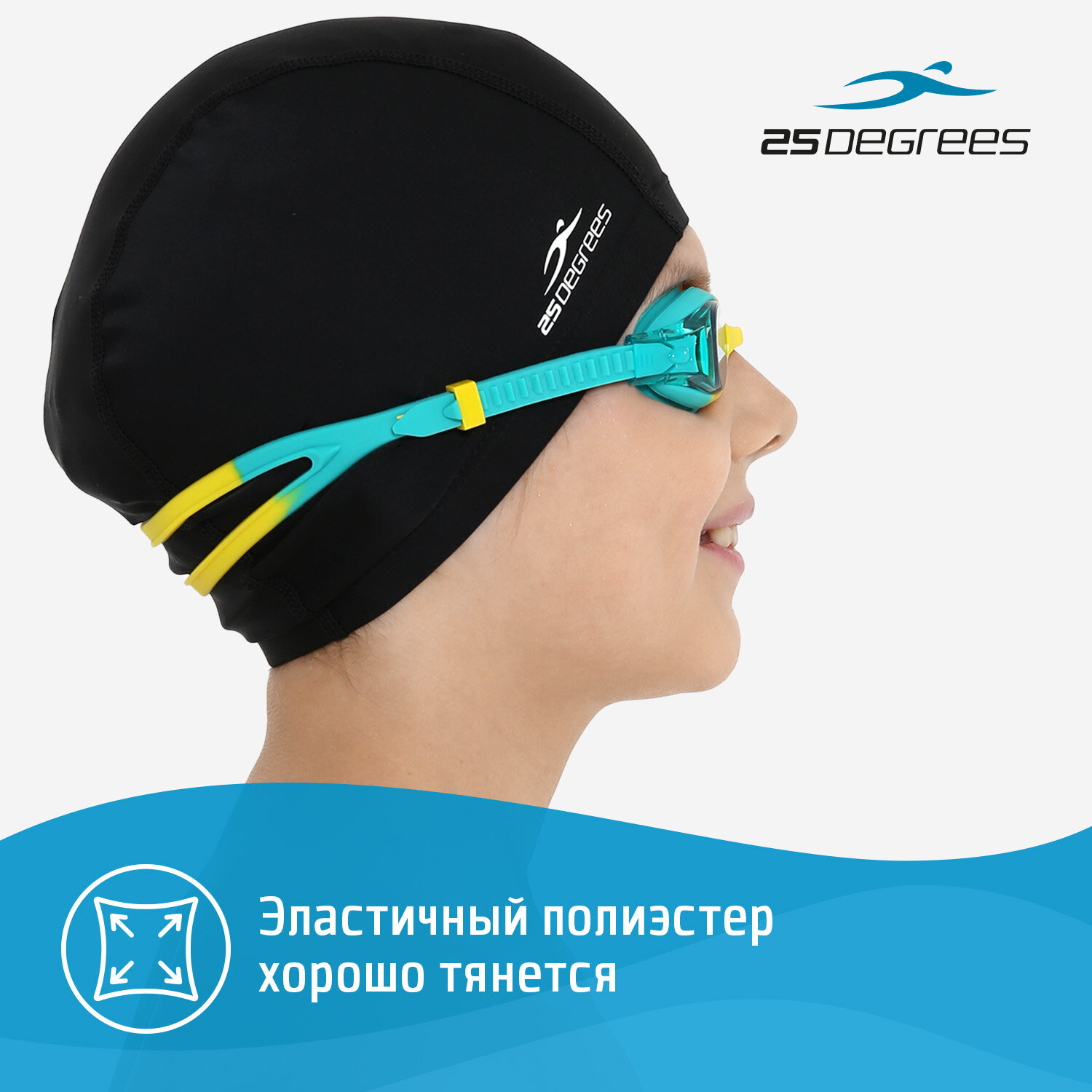 Шапочка для плавания тканевая 25DEGREES Comfo цвет черный