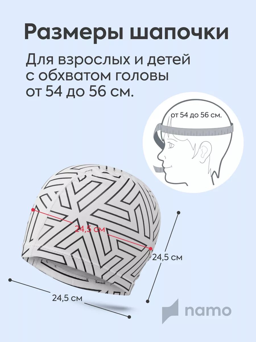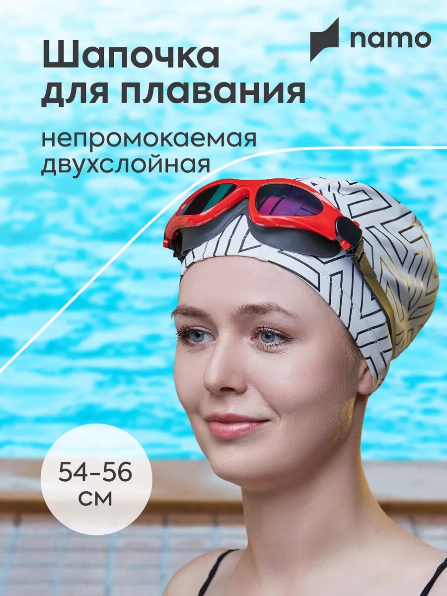 Шапочка для плавания непромокаемая NAMO, размер 54-56, белый интересное:
