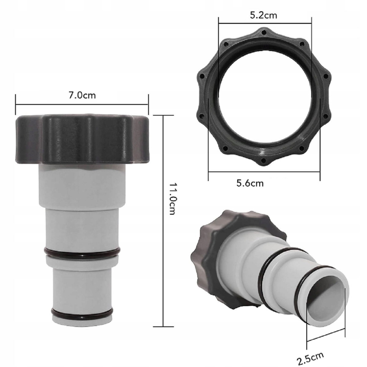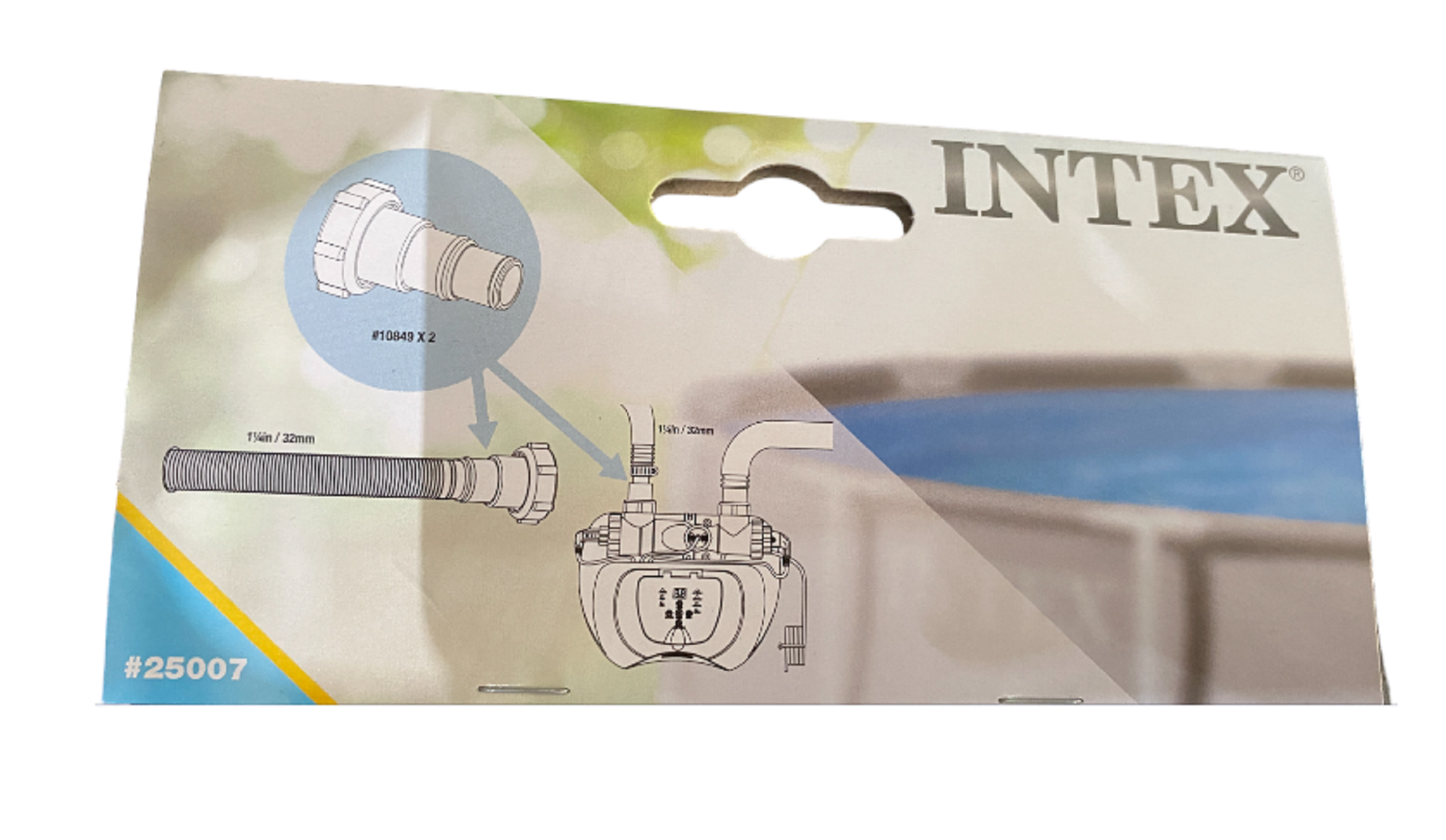 | Комплектация | 25007 Переходник - адаптер, набор 2 шт, под шланг для бассейна 32-38 мм, двухсторонний |