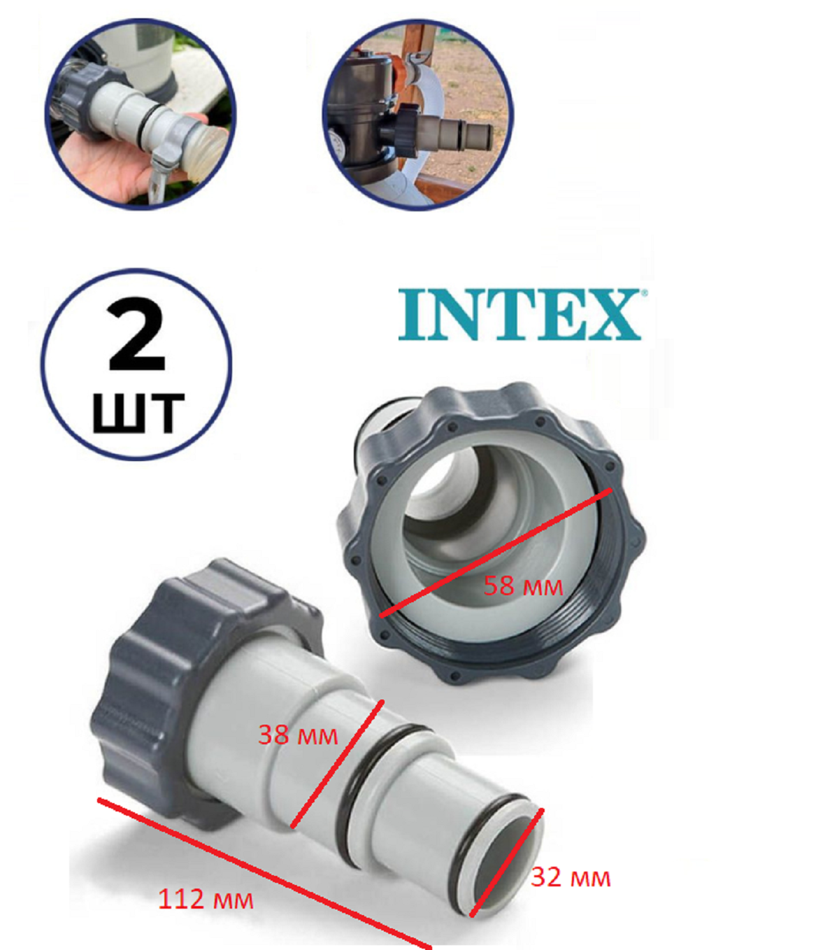 25007 Переходник - адаптер, набор 2 шт, под шланг для бассейна 32-38 мм, двухсторонний интересное: