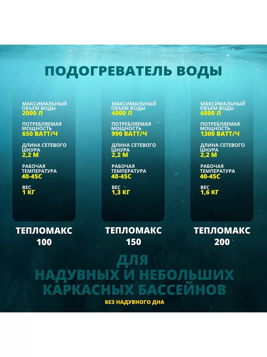 Электро-подогреватель для воды Тепломакс150 набор 2 штуки / Электроподогреватель воды для бассейнов объёмом до 8000 литров