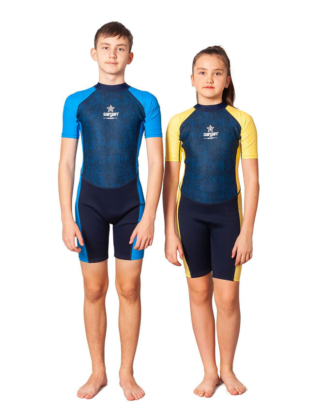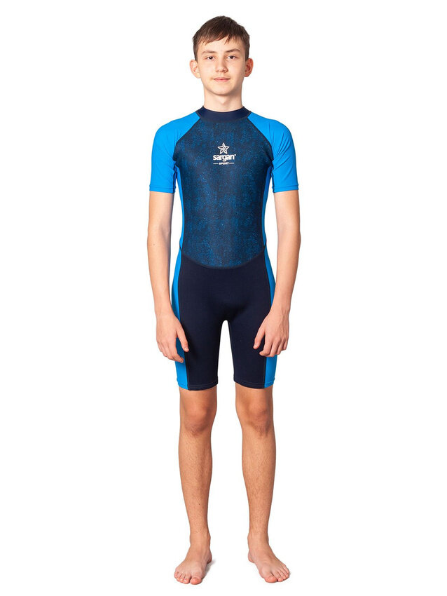 Купить Гидрокостюм из неопрена 2мм SARGAN SPORT короткий шорти детский с боковыми вставками из лайкры 11-12 лет синий