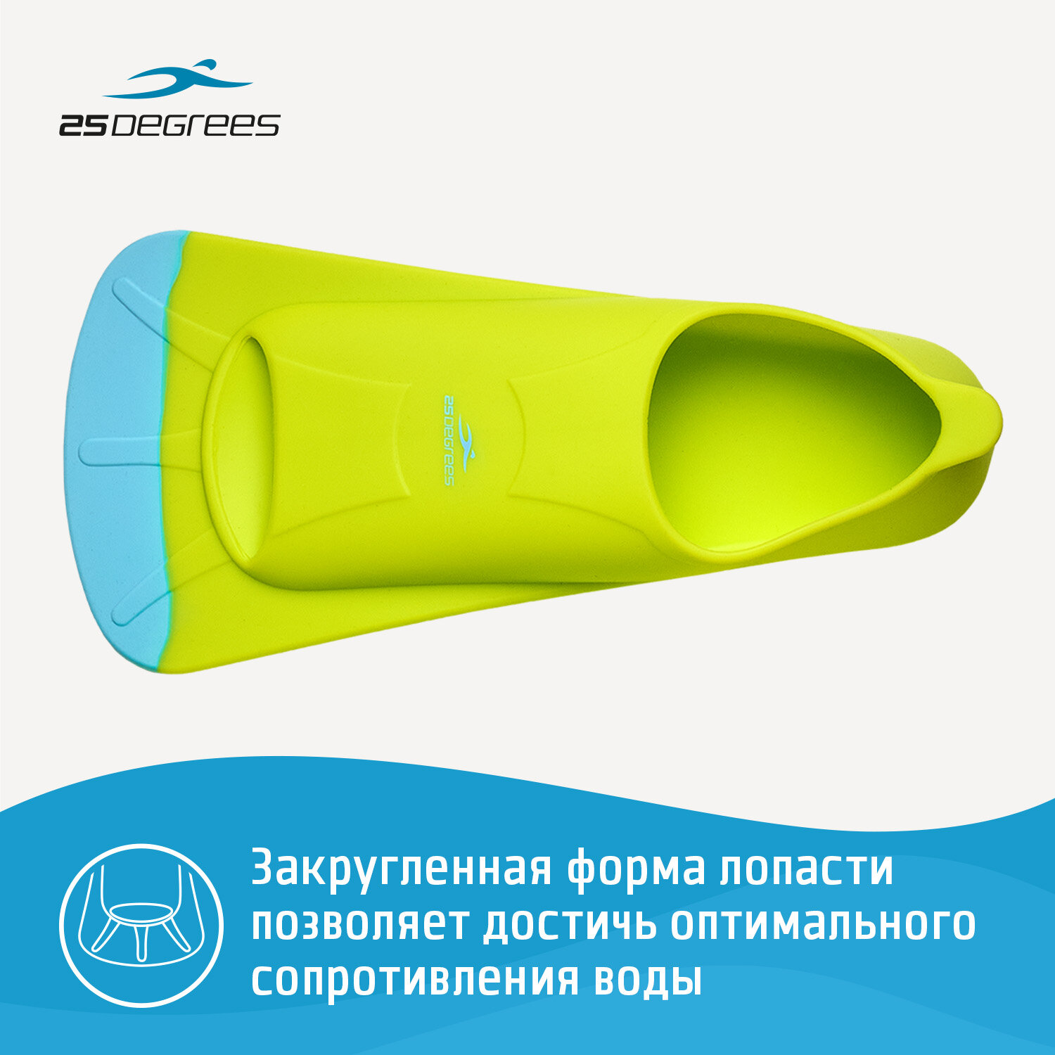 Ласты тренировочные для плавания в бассейне 25DEGREES голубой/лайм XS (36-38)