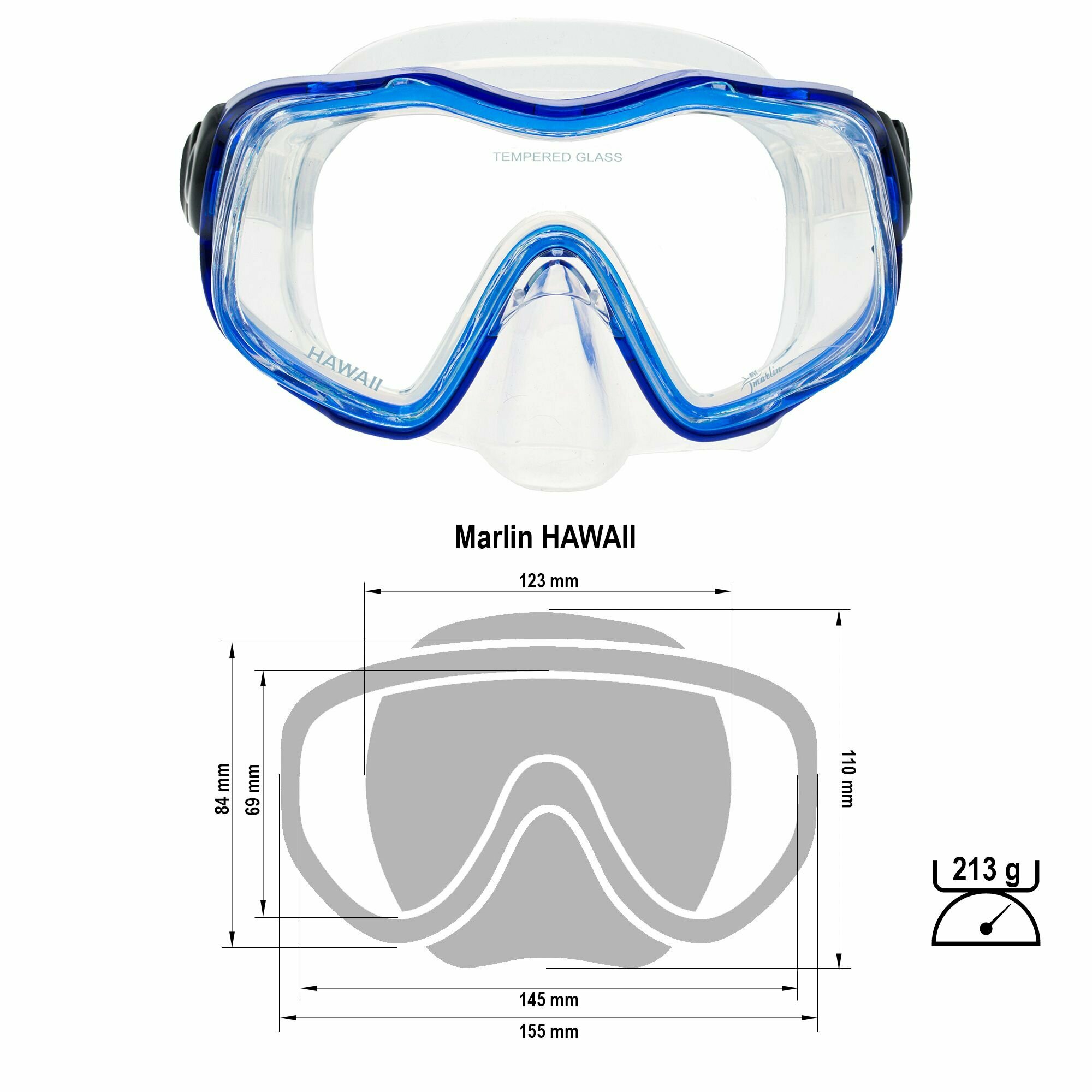 Маска для плавания MARLIN HAWAII Blue/Trans