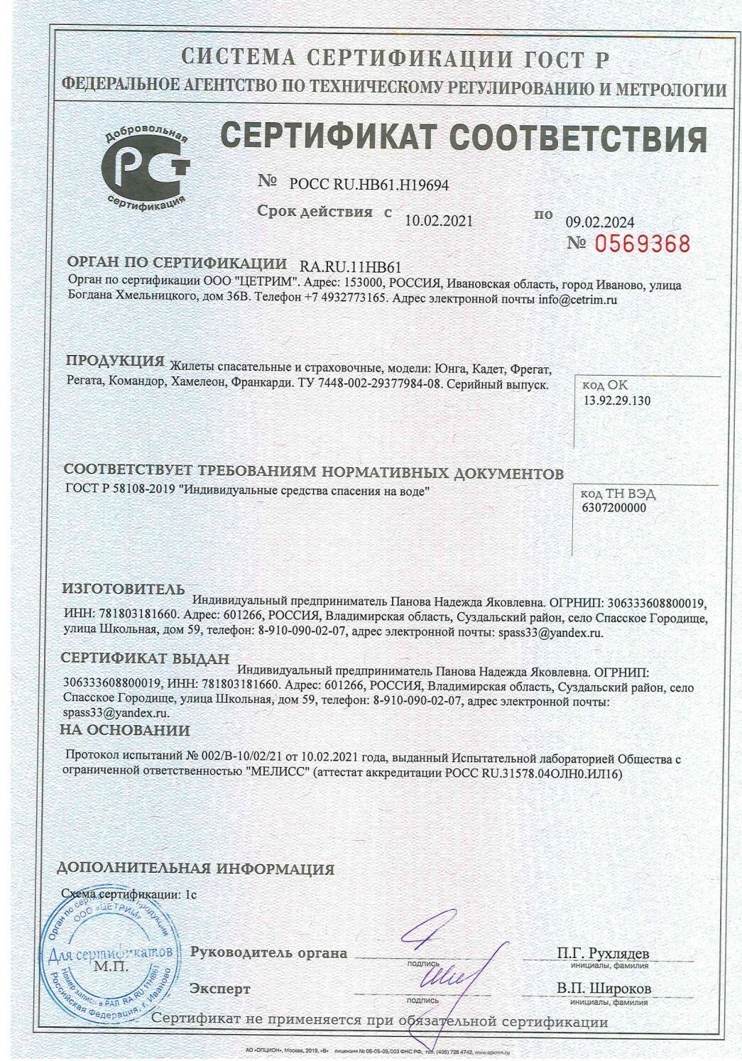 | Тип | спасательный жилет |