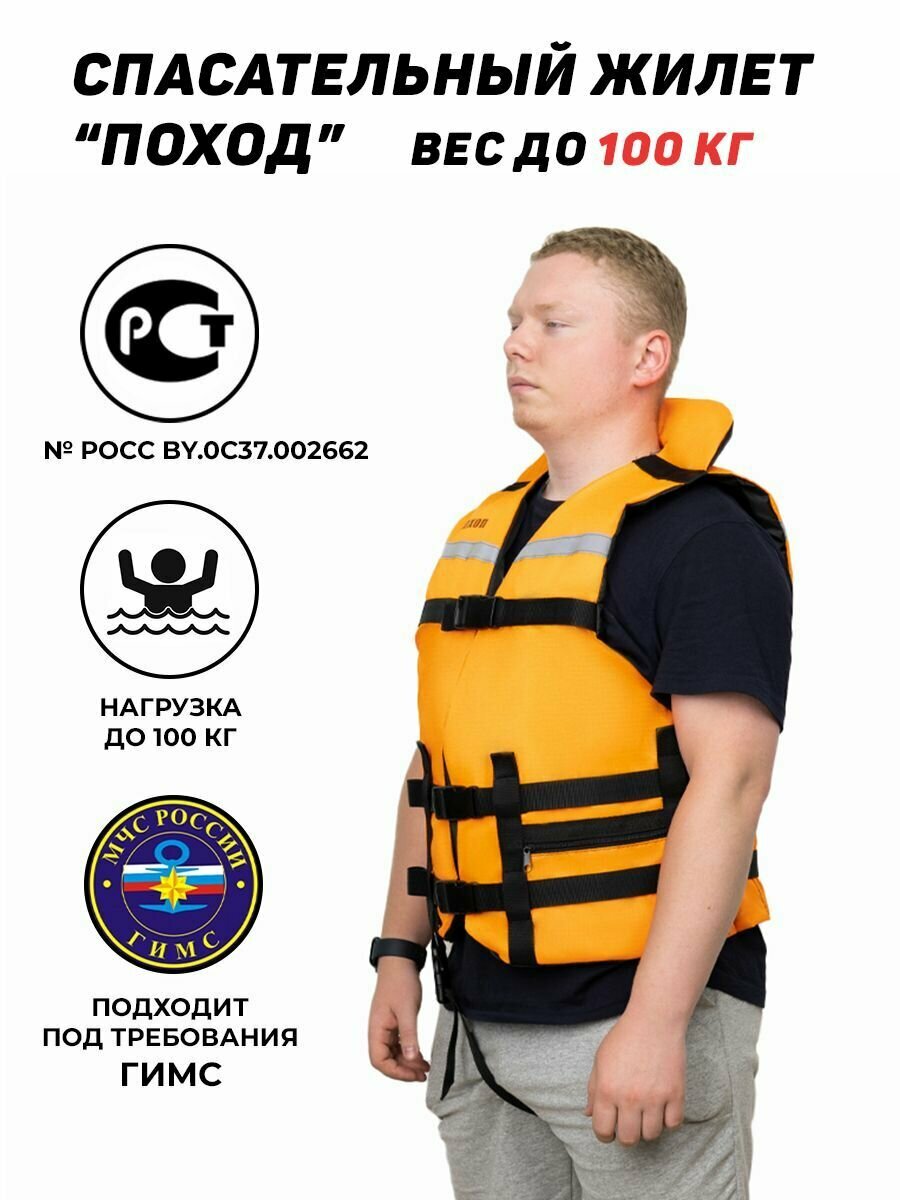 Спасательный жилет поход взрослый до 100 кг (ГОСТ Р 58108-2019)