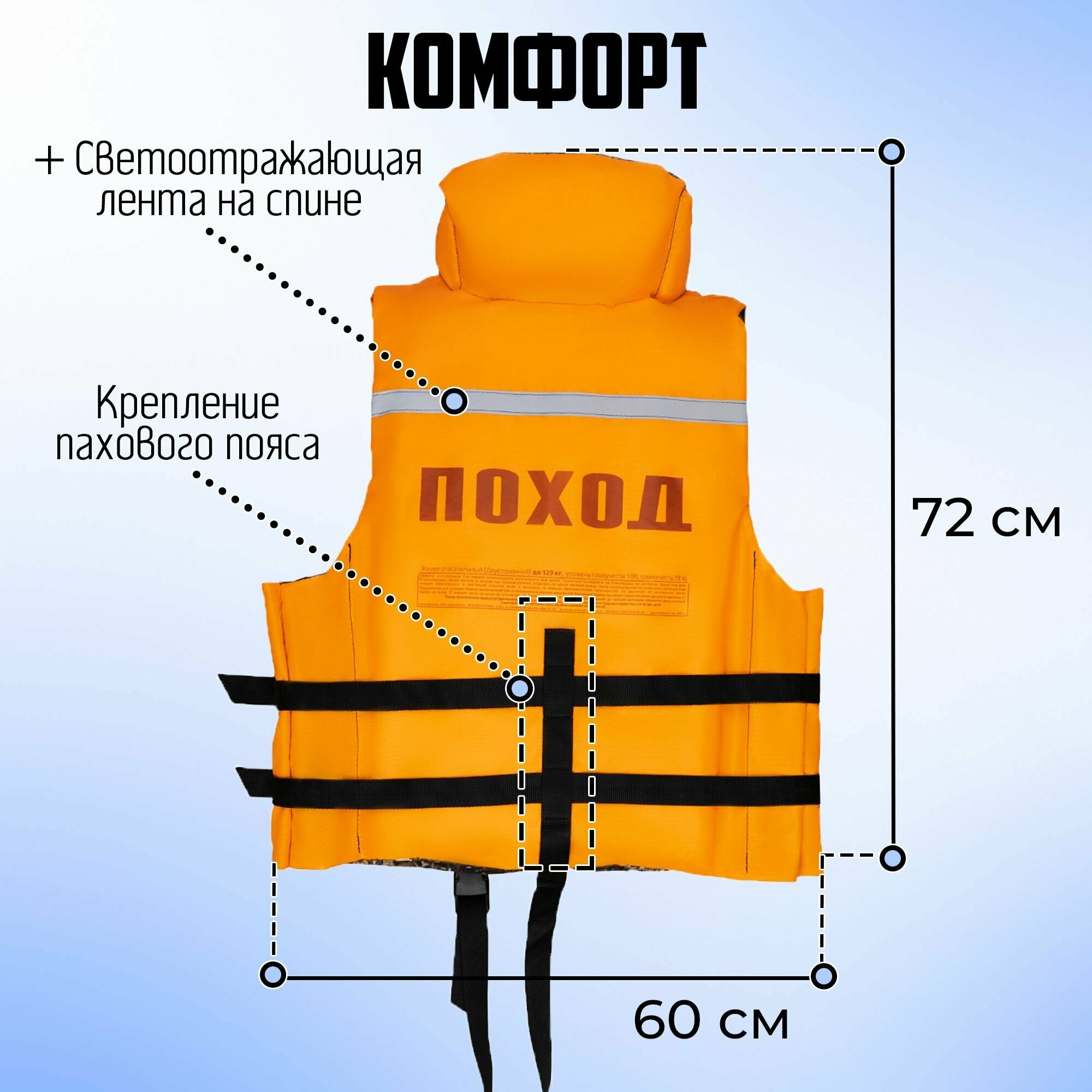 Спасательный жилет поход взрослый до 120 кг (ГОСТ Р 58108-2019) интересное: