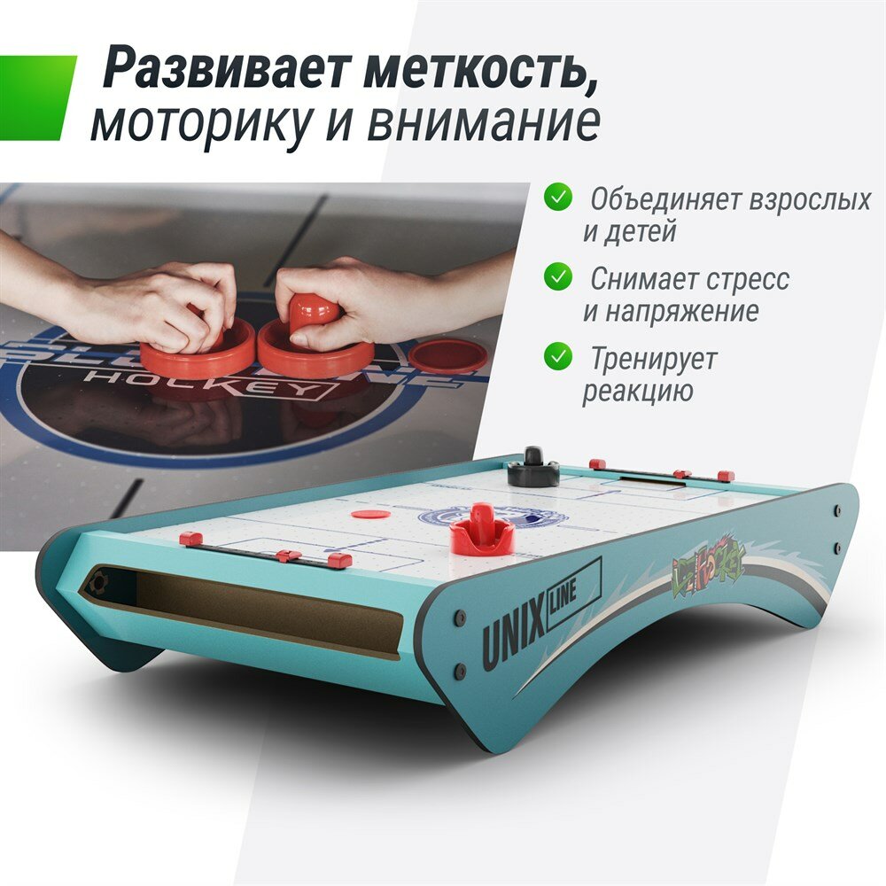 Купить UNIX Line™ Игровой стол UNIX Line Мини Аэрохоккей настольный (73х40 cм), GTHU73X40BE Морской Волны, Черный