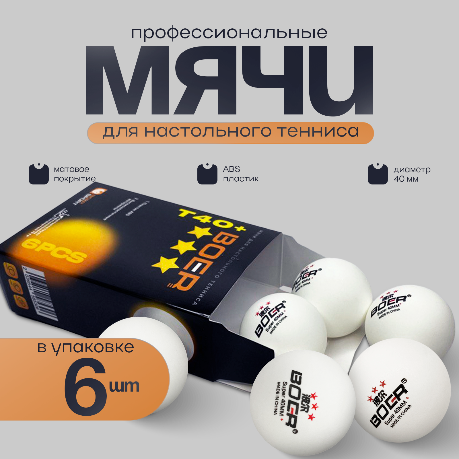 Мячи для настольного тенниса, 6 шт. Набор мячиков для пинг-понга, 40+мм. Шарики для пинг-понга, белый Boer интересное: