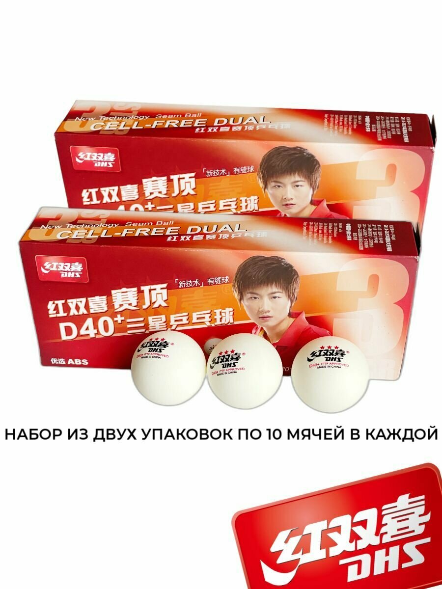 Купить Мячи для настольного тенниса профессиональные для международных соревнований DHS D40+ 3 звезды 10 штук в упаковке, 2 упаковки