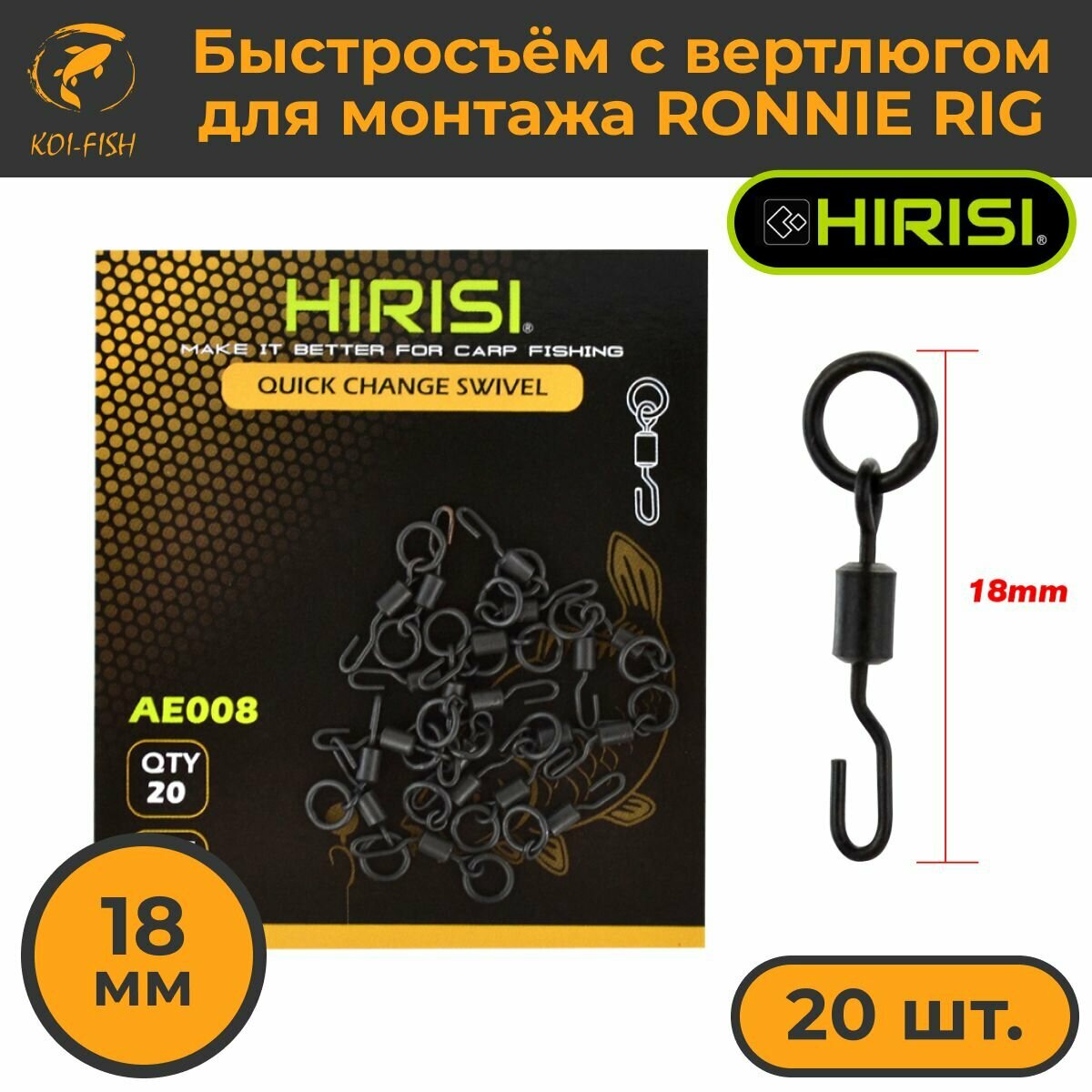 Купить Быстросъём с вертлюгом для монтажа RONNIE RIG (AE008) 20шт. 18мм коннектор рыболовный для поводков для карповой ловли