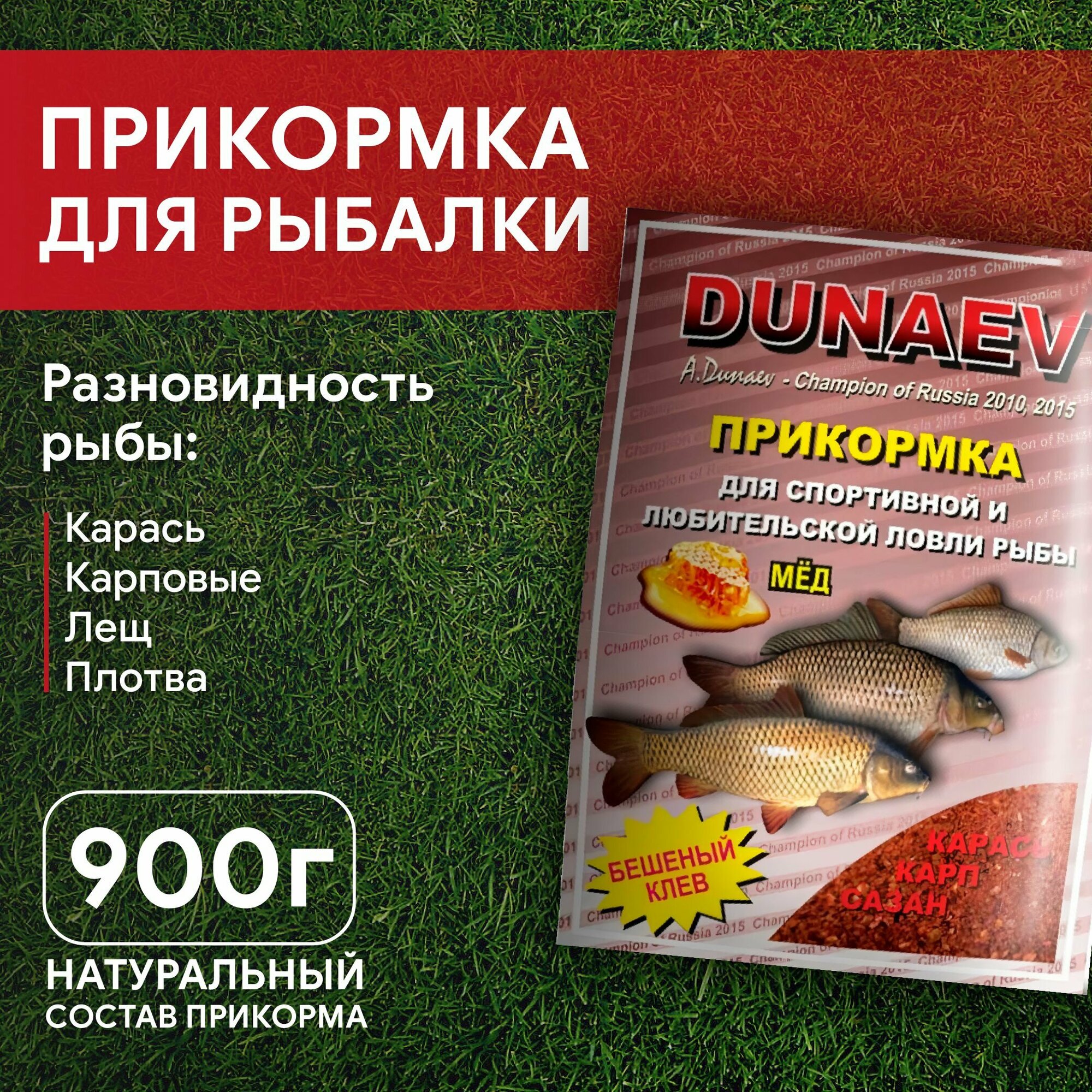 Прикормка натуральная Дунаев "DUNAEV классика" 0.9кг / Мед
