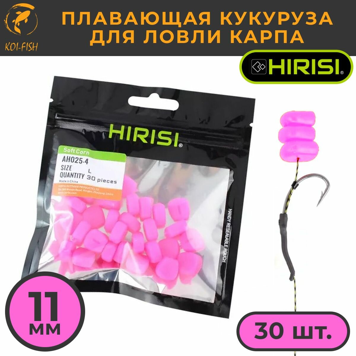 Кукуруза силиконовая для рыбалки HIRISI AH025-6, 30 шт, плавающая, насадка