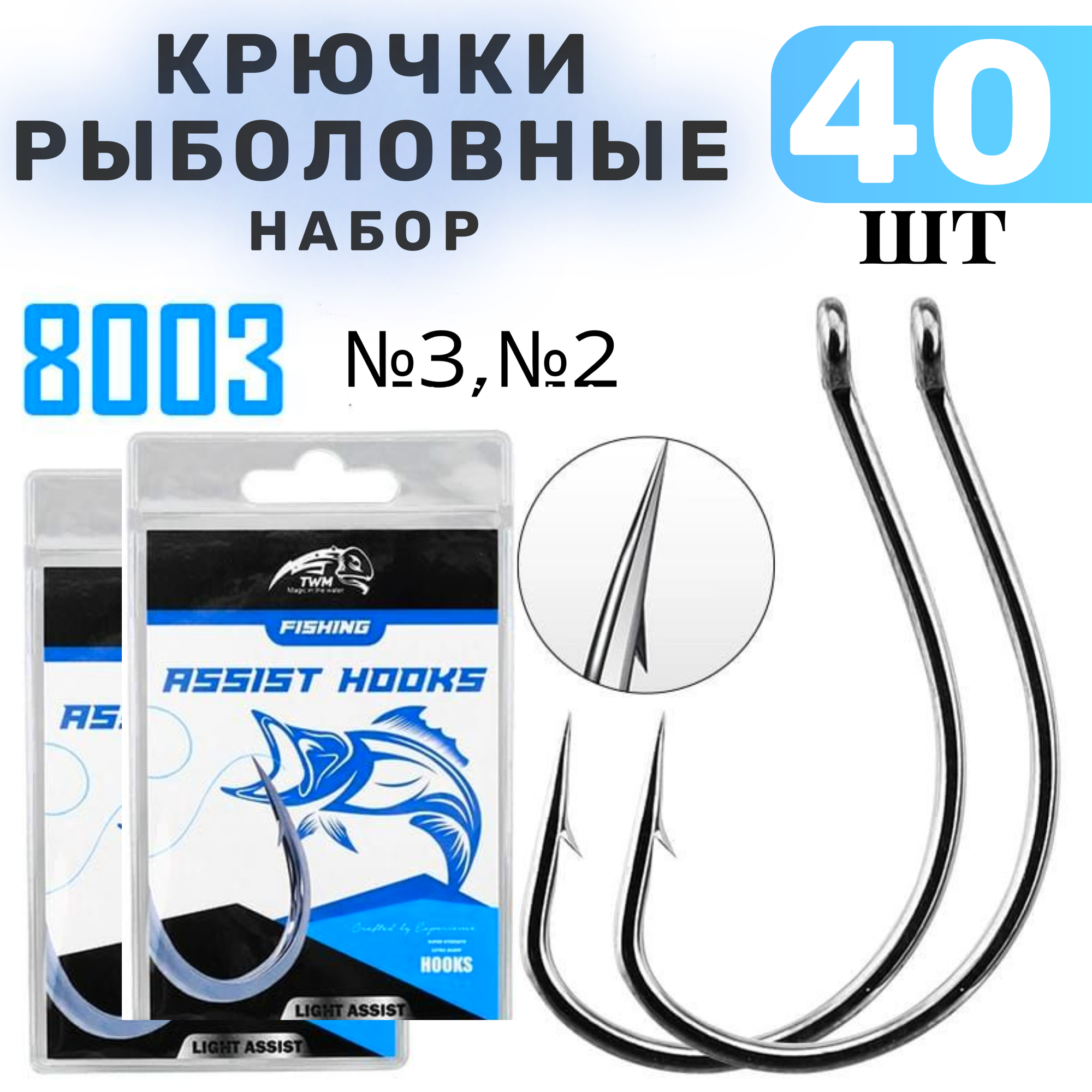 Купить Крючки рыболовные 40 шт. №2, №3/крючки карповые "8003"