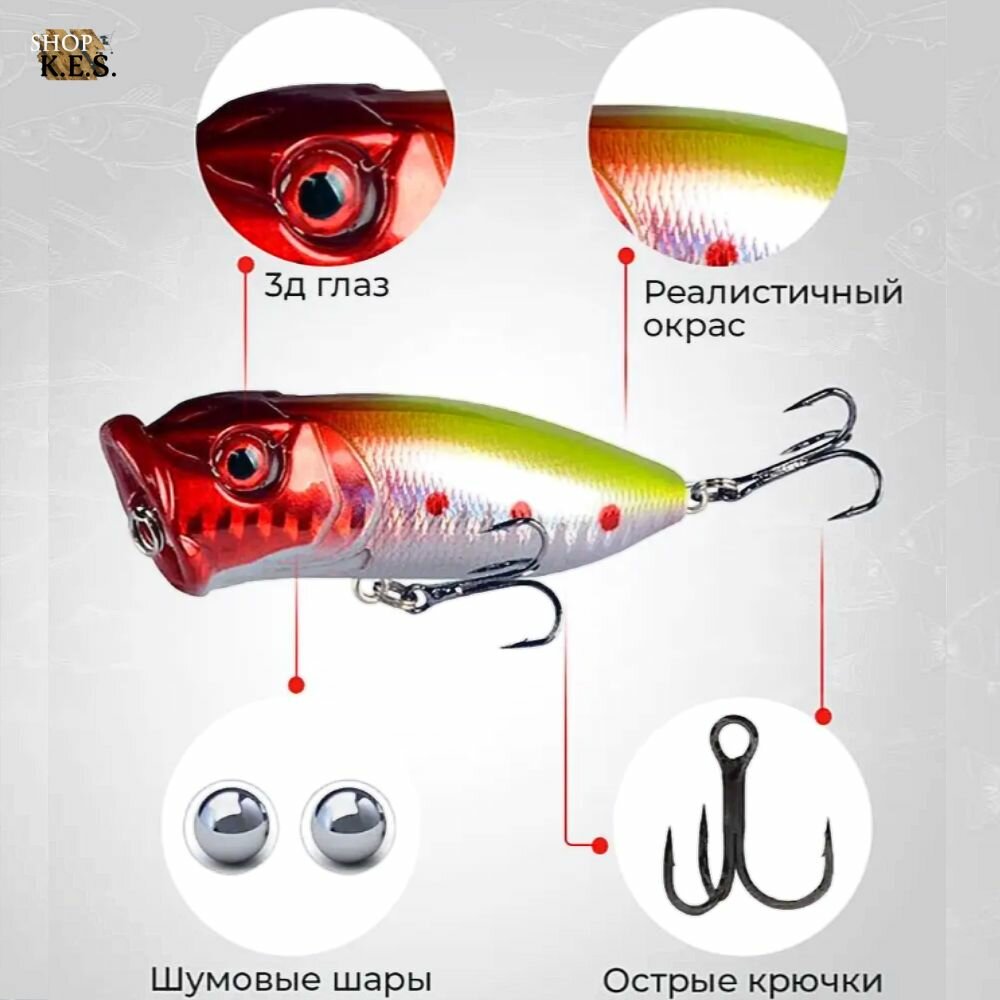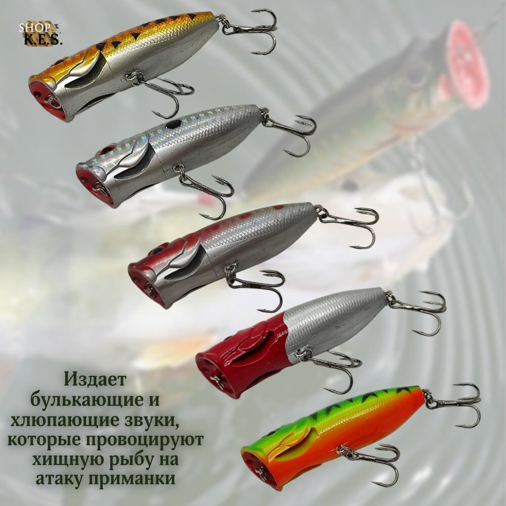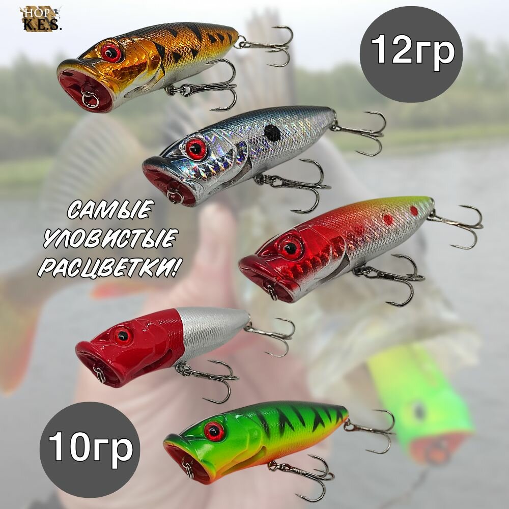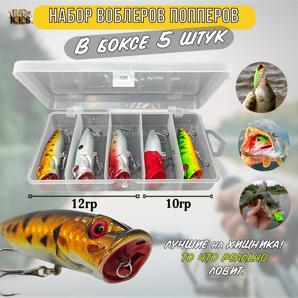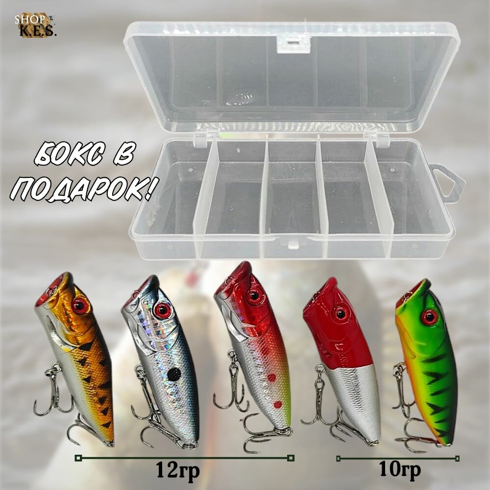 Попперы воблеры 10гр 12гр 5шт в боксе / Набор воблеров для рыбалки на щуку, жереха, окуня интересное: