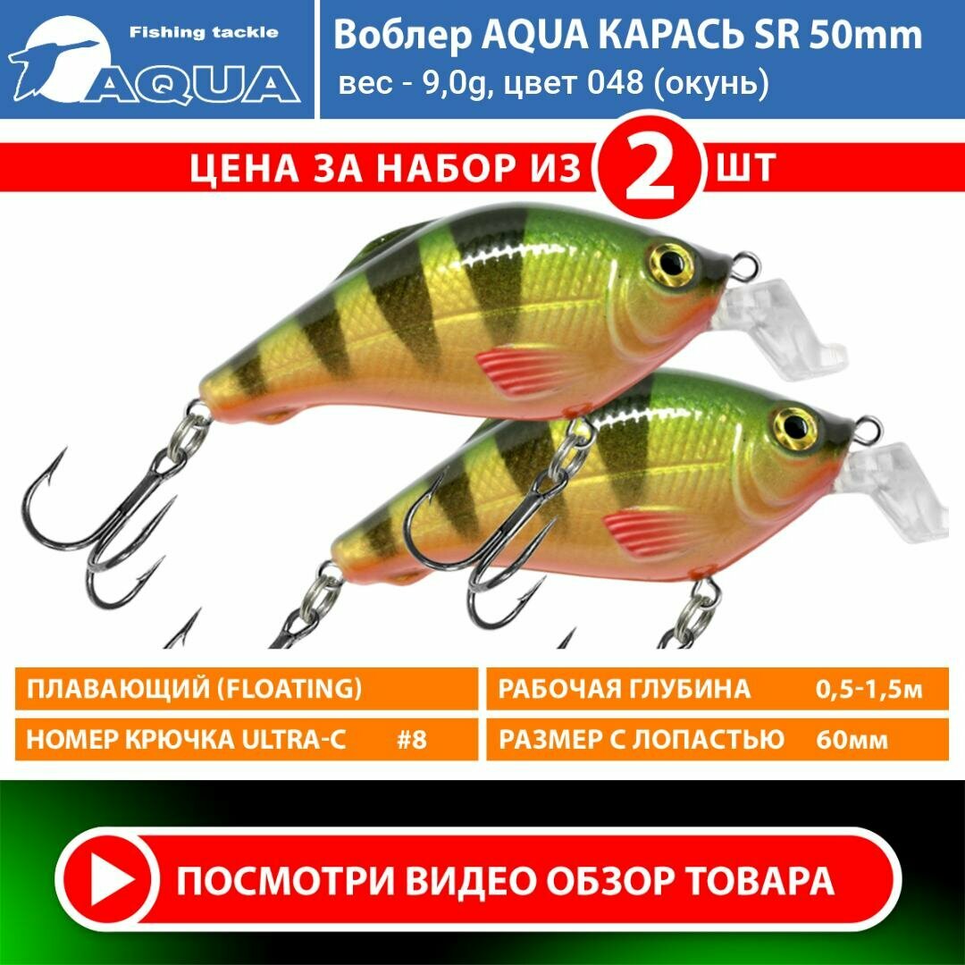 Купить Воблер для рыбалки плавающий AQUA Карась SR 50mm 9g заглубление от 0.5 до 1.5m цвет 048 2шт