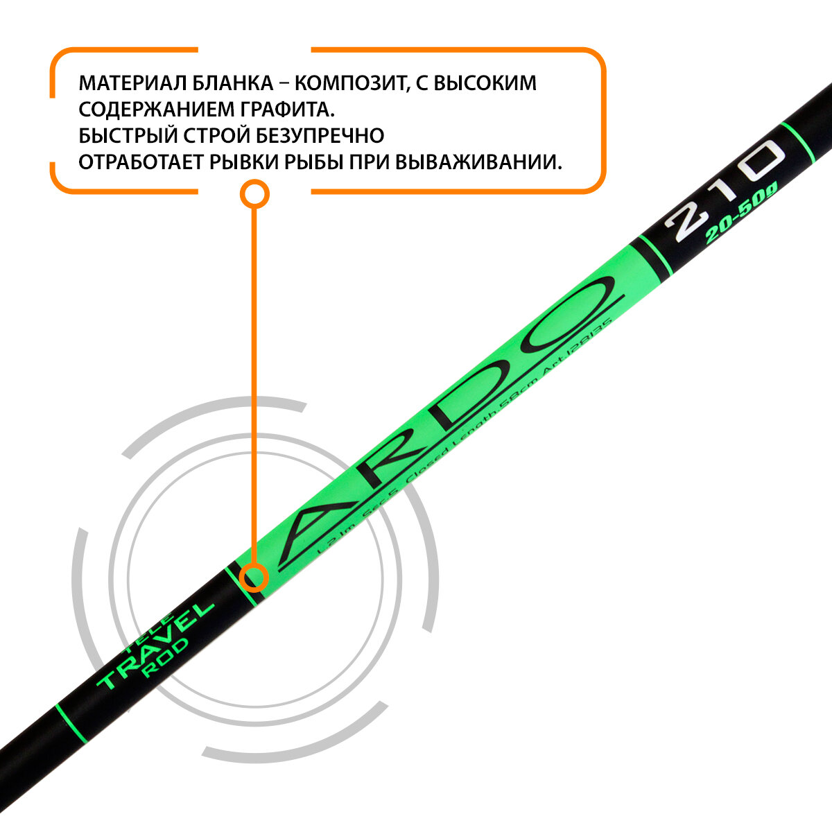 Купить Спиннинг телескопический AQUA Ardo, длина 2,10 метра, тест 20-50 грамм