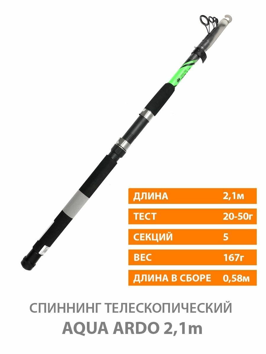 Спиннинг телескопический AQUA Ardo, длина 2,10 метра, тест 20-50 грамм